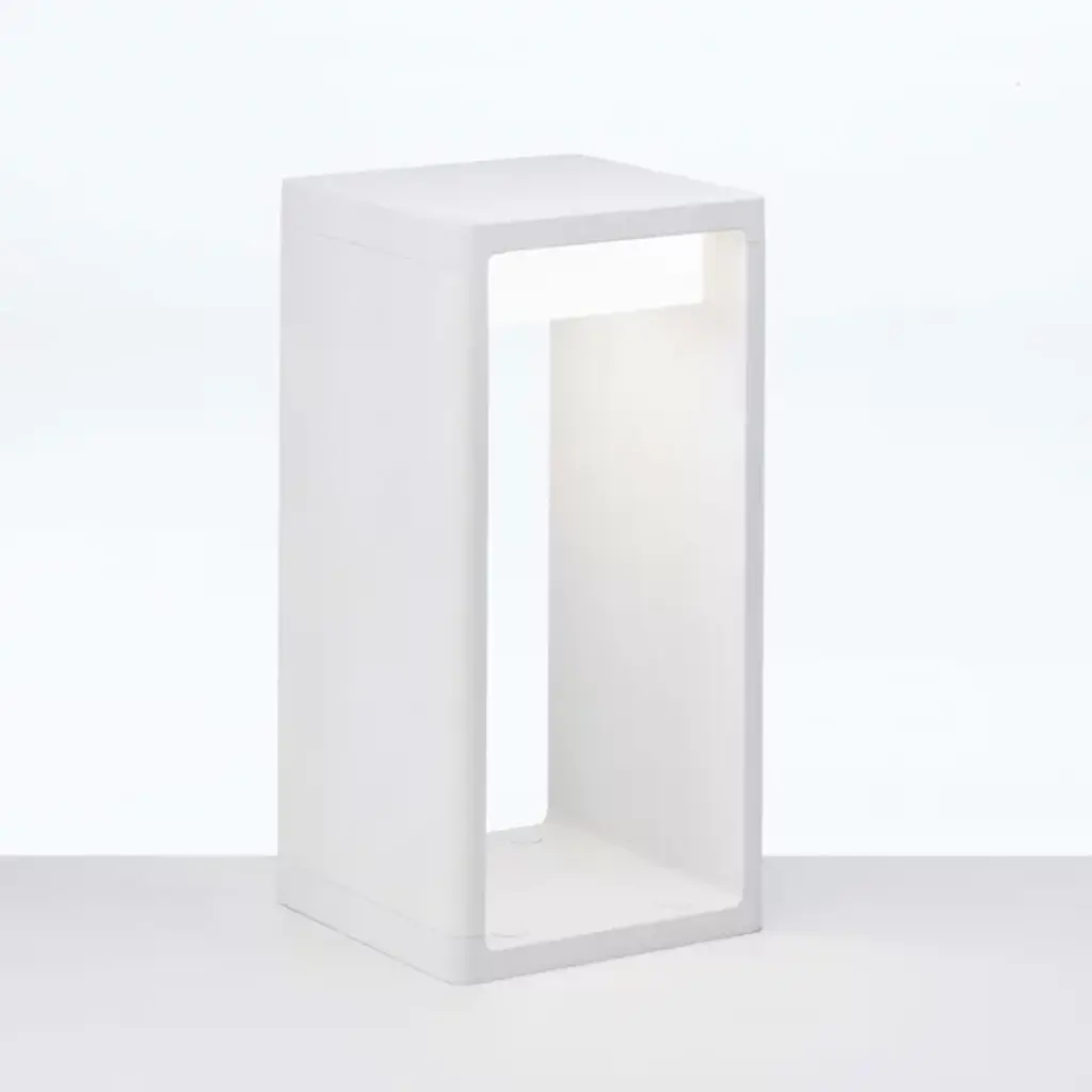 The Frame Outdoor Path Light from B.lux extends smooth lines and abstract design to its surroundings. An appealing design from the mind of Mario Ruiz, it uses his experience with industrial design and extensive experience to create something incredible. It starts by using an open, aluminum rectangle frame to secure a small, strong LED lamp below its upper edge. The light is gentled by a pressed glass diffuser that transforms bright glare into an even warmth reflected off the structure’s interior, providing ample ambient light.