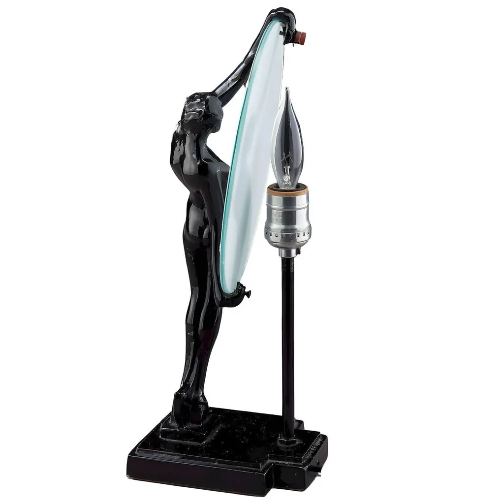 Frankart Style Nude Nymph Silhouette Moon Black Spelter Table Lamp By Sarsparill
