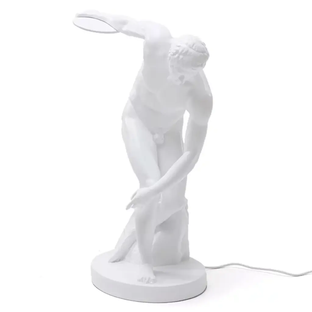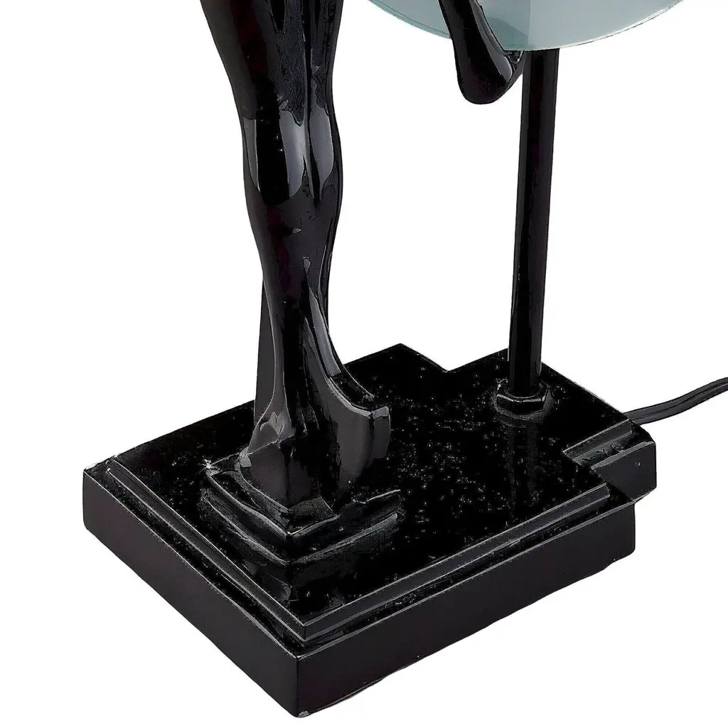 Art Deco-styled Frankart re-edition by Sarsparilla features a nude nymph silhouette moon black metal table lamp. This lamp is crafted from black-painted white metal featuring a graceful nymph silhouette against a radiant moon motif glass disc.The lamp features a toggle light switch and takes a standard US light bulb.Dimensions: 15" height x 5.5" width x 4" depthUnited States, 1970