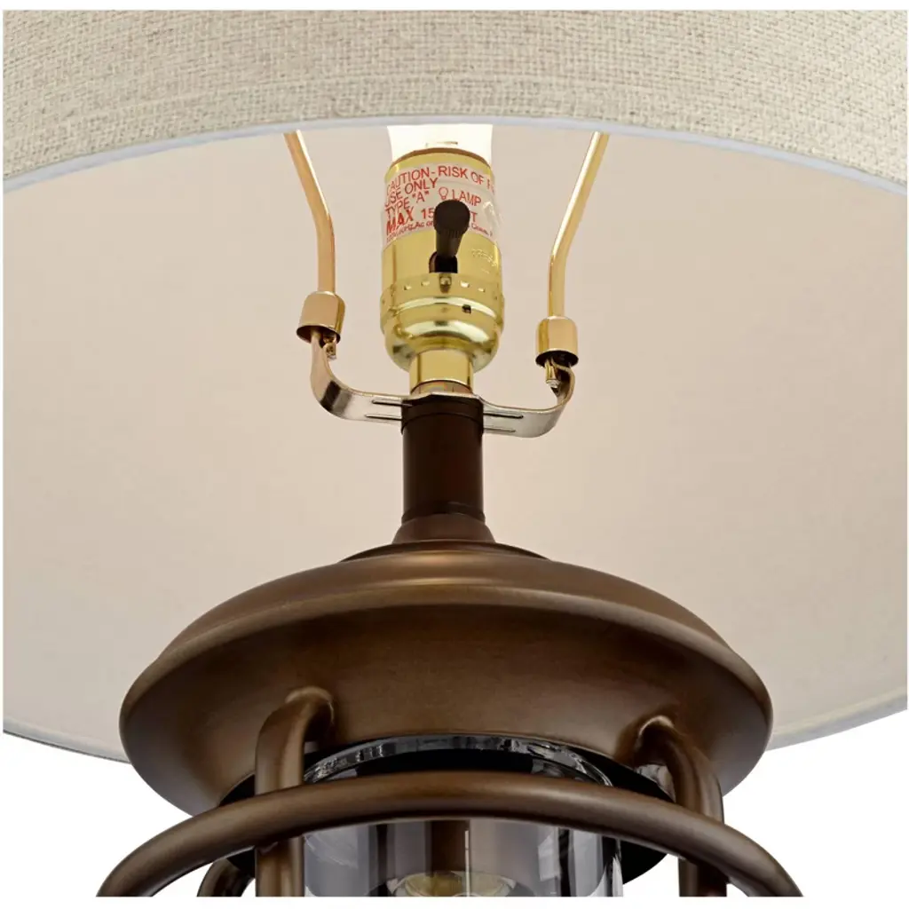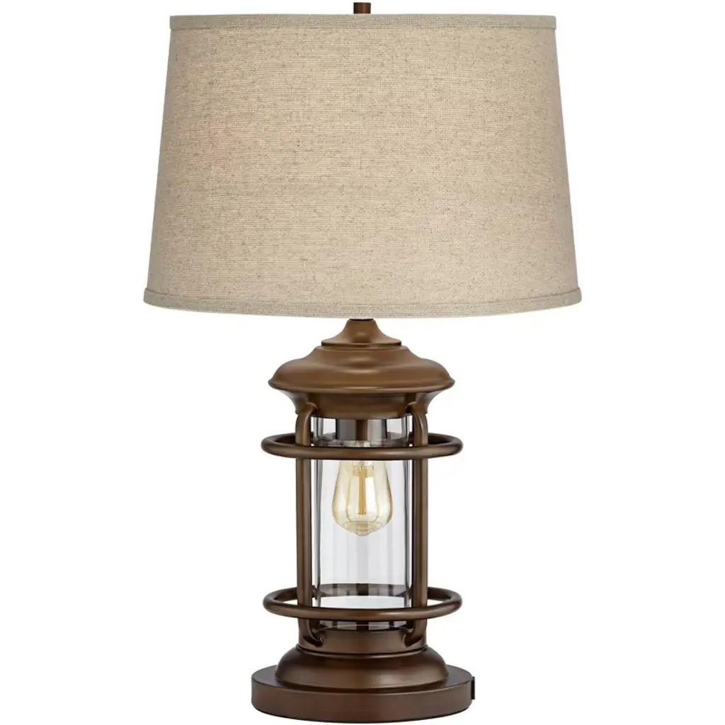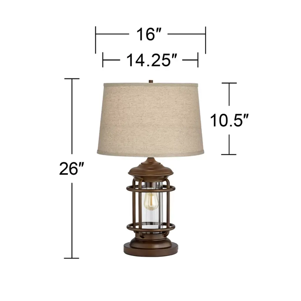 Add industrial charm to your decor using this metal table lamp with clear glass. A nightlight at the base adds convenience in the evenings. Use the dual USB ports at the base to easily keep your smartphone devices charged up. The USB ports will operate even if the two lights are turned off.
