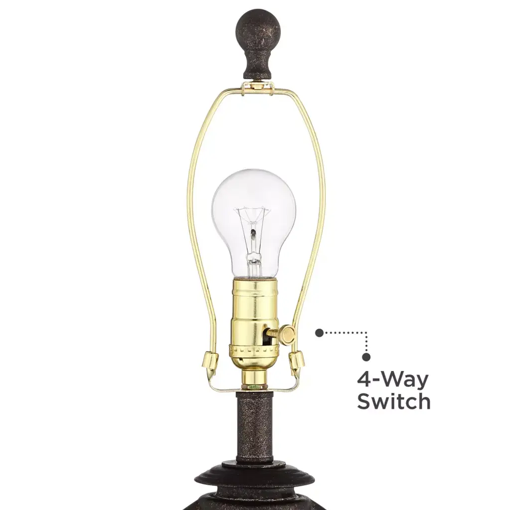 Franklin Iron Works Horace Rustic Table Lamps 25 1/4" High Set Of 2 Bronze With Nightlight Cream Fabric Drum Shade For Bedroom Living Room Bedside