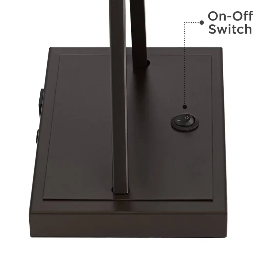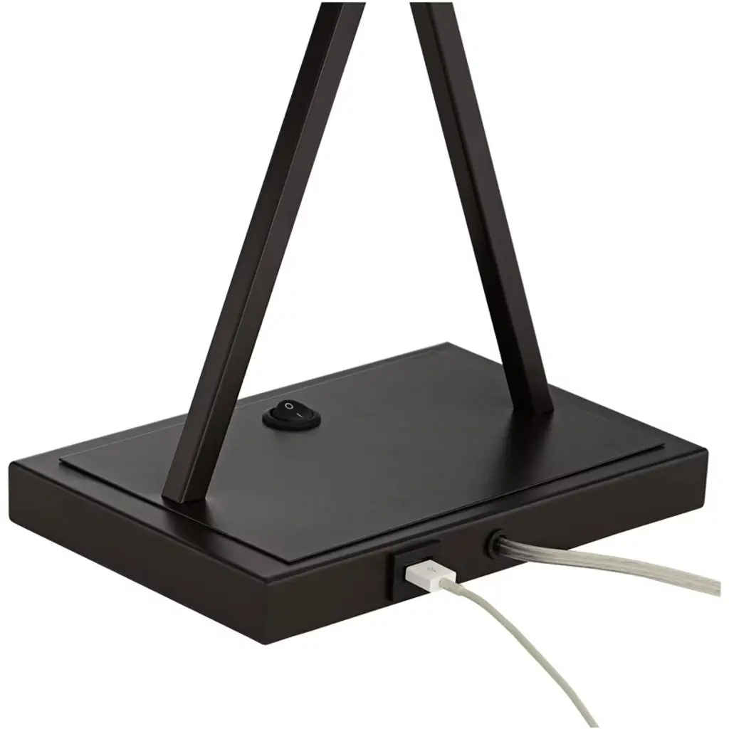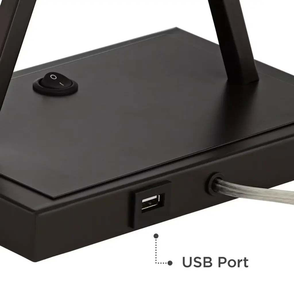 Franklin Iron Works Megan Modern Table Lamps 26 1/2" High Set Of 2 Bronze Metal With Usb Charging Port Led Rectangular Fabric Shade For Bedroom Desk