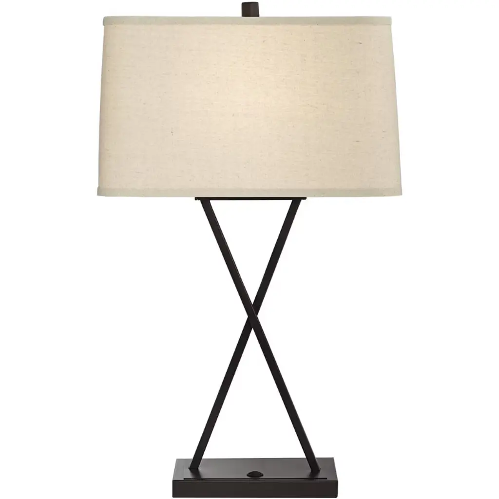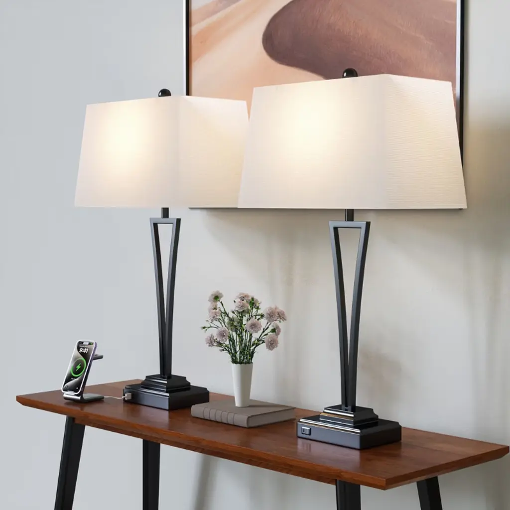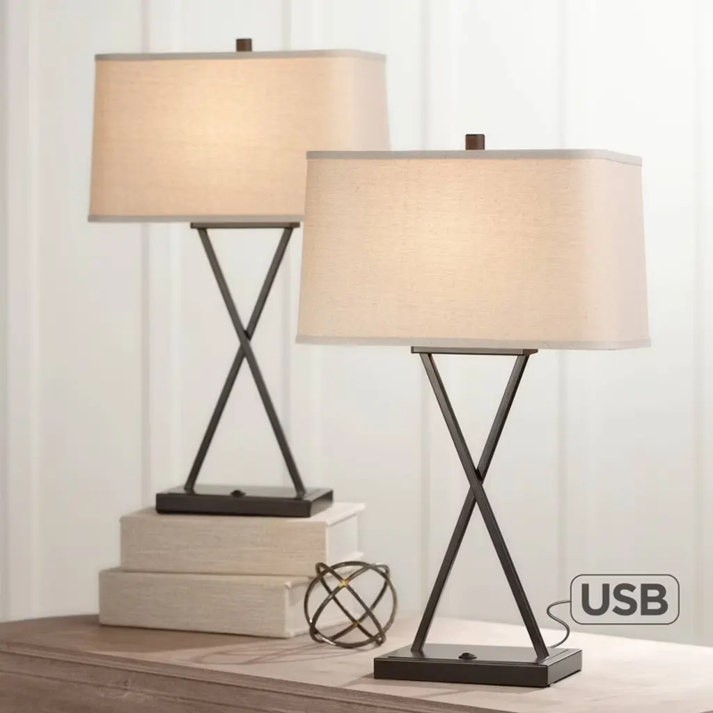 This pair of table lamps adds twice the style to your home. Sporting a contemporary look with an X design, this set comes with USB ports that allow you to charge your devices easily. The perfect combination of looks and convenience.