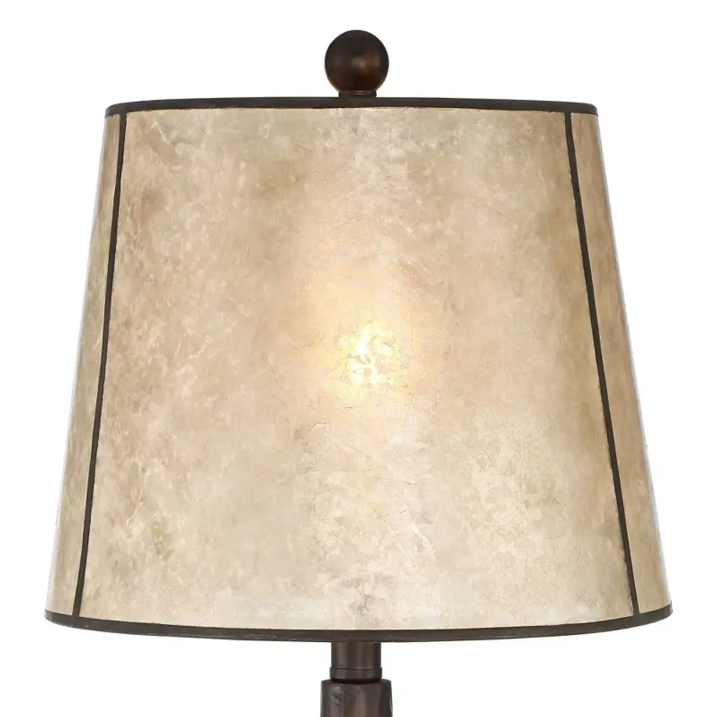 A sophisticated update of classic industrial styles, the Naomi table lamp is a great addition to a modern farmhouse space. From the Franklin Iron Works™ brand, it comes in an aged bronze finish body, topped with a mica shade for a look of organic elegance. An on-off switch is located on the socket. This stylish industrial table lamp is perfect for lighting up a living room or bedroom. Note that due to the natural mica shade material, the color and pattern may vary slightly.
