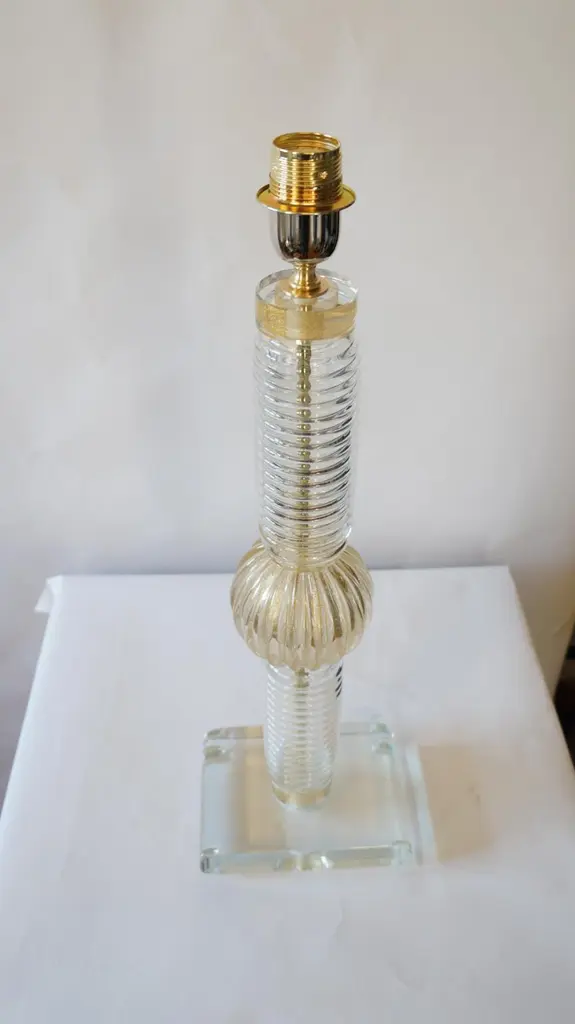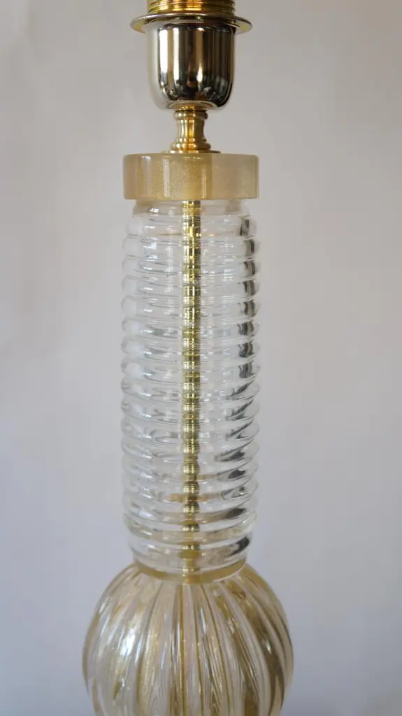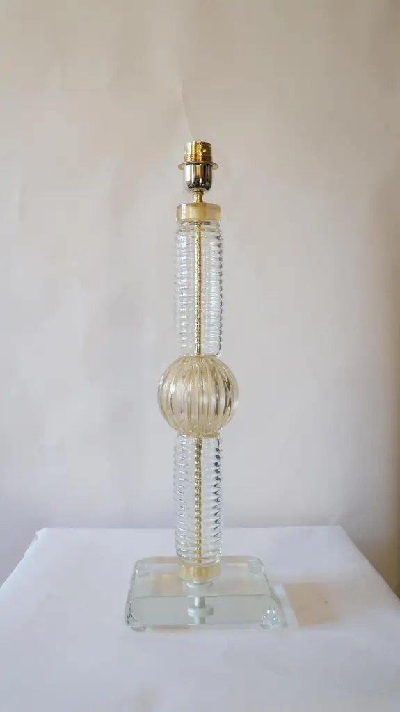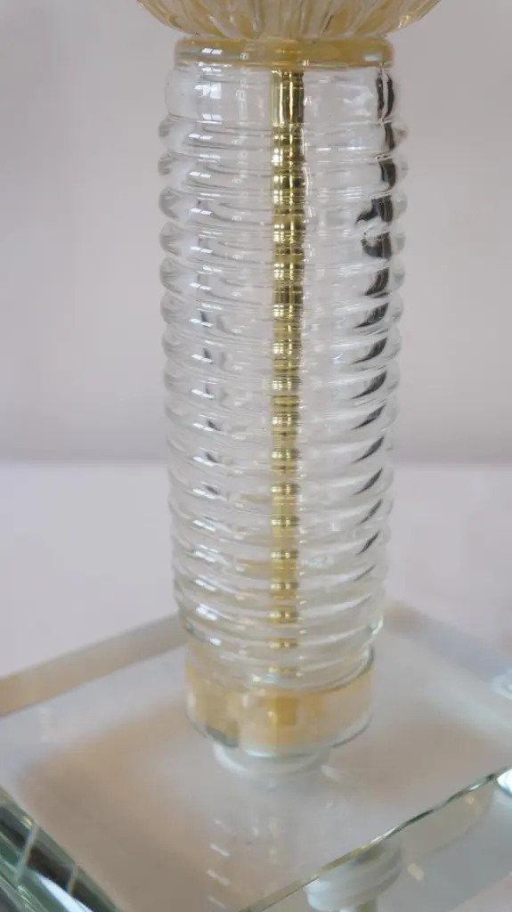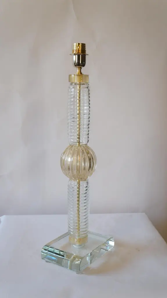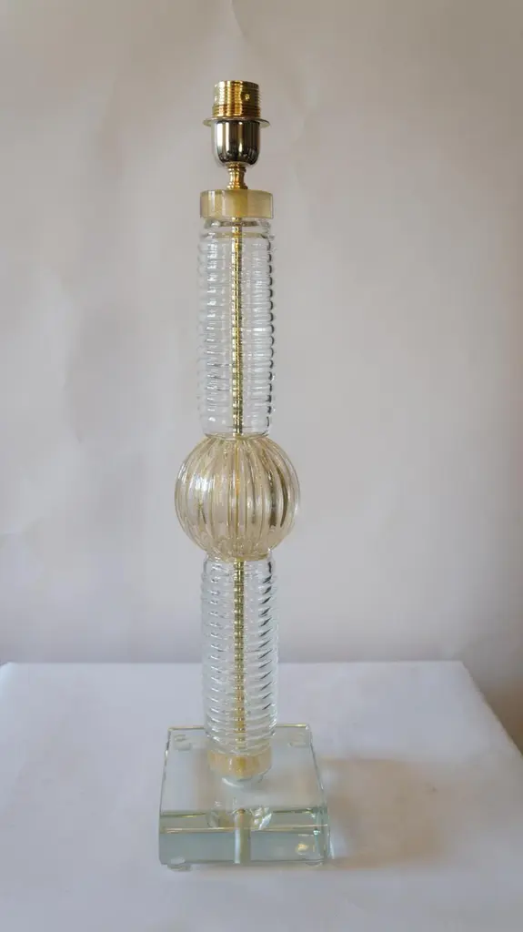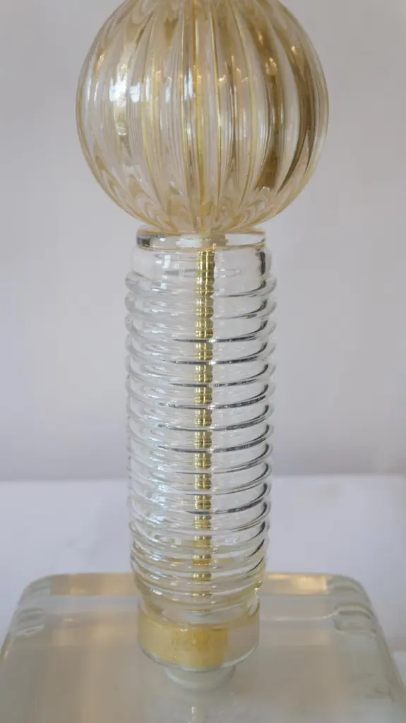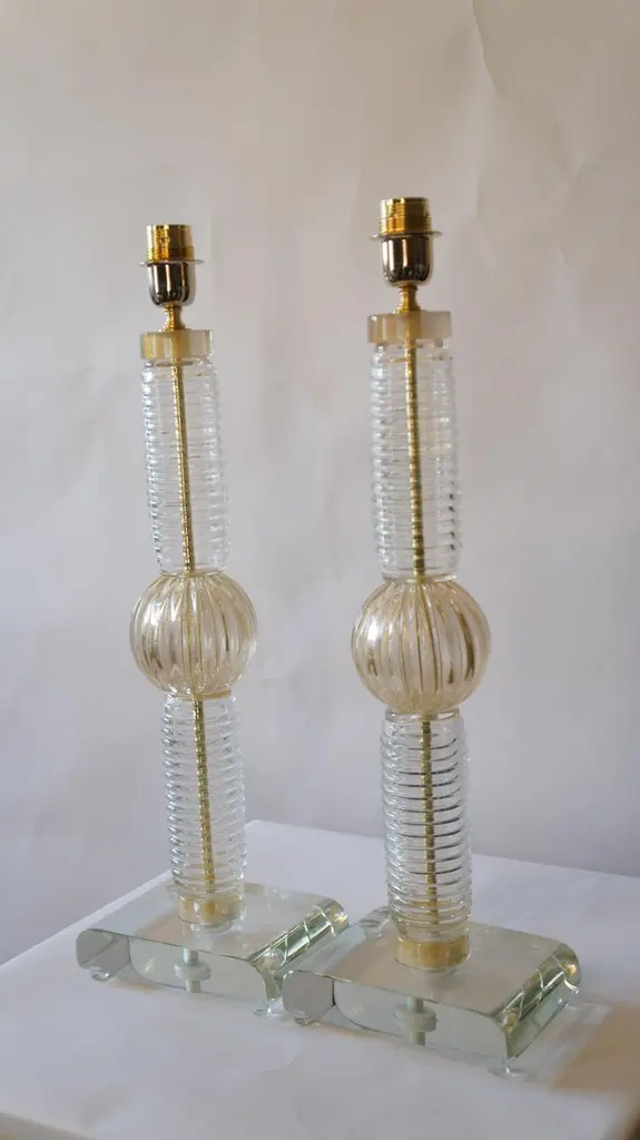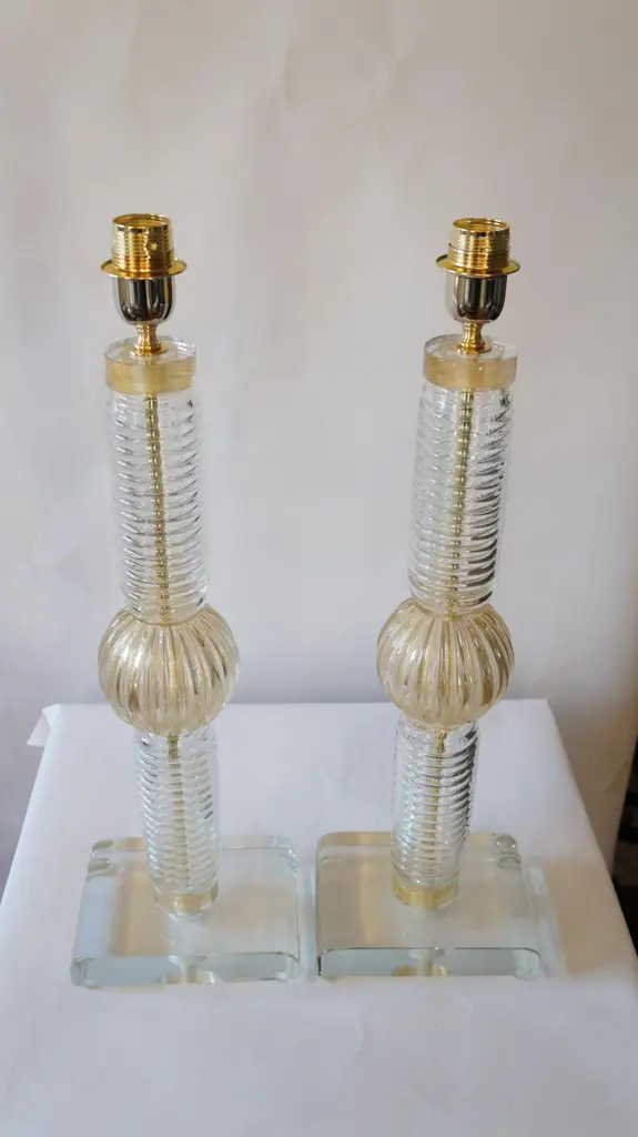 Have you ever seen a lamp like this? I would say no. It's definitely a unique lamp and in its own way, fun in its elegance. Formed of crystal tubes juxtaposed with gold crystal spheres to things, these lamps are truly refined. They start from a transparent square base, and stretch 62 cm upwards. What are you waiting for to get them? Illuminated they are even more fabulous!Lamps produced by Fratelli Toso in 1974The products are entirely handmade in style Mid-Century ModernThe price of the item includes professional and tailored packing.Lamps can be rewired for your country code.