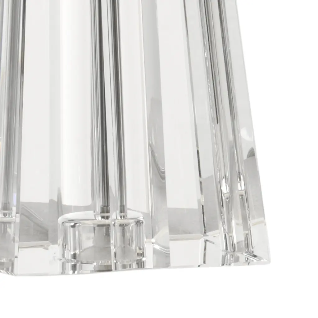 Irina Is Delicately Cut Crystal With A Scooped Notch In The Center Of Each Side. The Neck Is Polished Nickel. Name: Irina Lamp Brand: Frederick Cooper Dimensions (in): 28.8h x 5.3w x 5.3d Weight (lbs): 21.2 Materials: Crystal Finish: Clear/Cut Shade Color: OFF WHITE Shade Material: SILKETTE Shade Dimensions: top(10 x 1