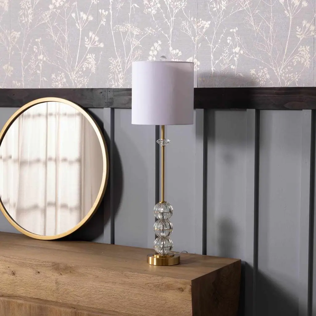 Collection: Freehold Colors: Clear Material: Body: Crystal,Body: Metal,Base: Metal,Shade (Outside): Linen,Finial: Crystal Styles: Updated Traditional,Traditional Made In: China