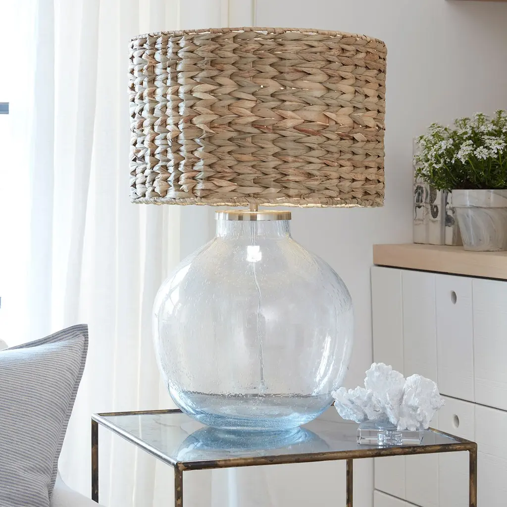 A woven rattan shade is pure magic, especially when paired with a clear glass base. Inspired by nature and relaxation in mind, this table lamp is destined to bring a comforting glow to your home.