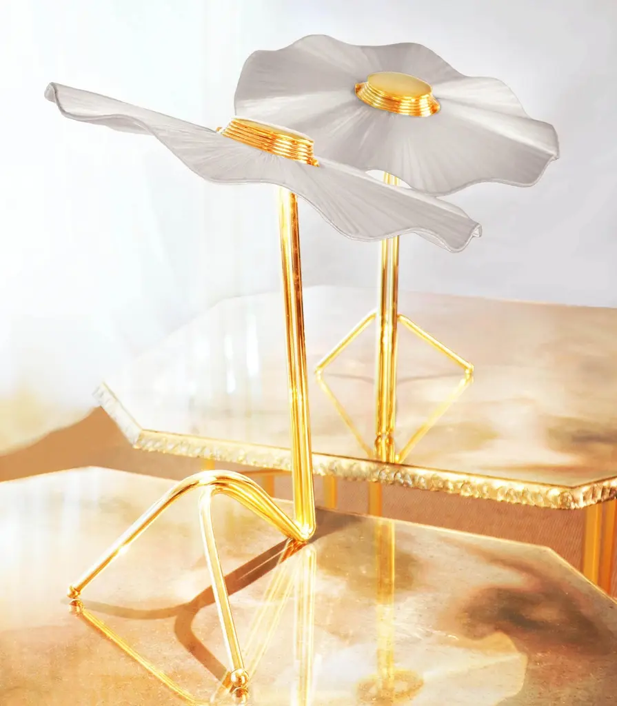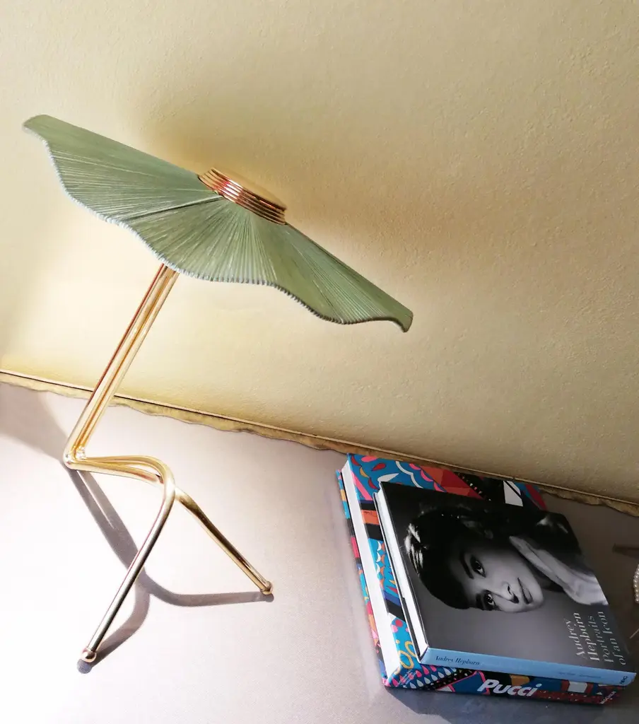FREEVOLLETwist and go! The timeless “Made-in-Italy” celebrates the graceful Italian manufacture and offers new life expression at the Maison Sabrina Landini.Creativity explores new shapes achieving the essence, overcomes life-blood to appreciate the vibrant happiness, an ode to movement, like a free dance, welcomes the upcoming Lady-lamp "Freevolle".The lampshade seems to flight like colored skirts raised up by a puff of wind.Brass shimmers by its sinuous shape and winkes at the captivating twist of legs and its turning head Freevolle, the exquisite Lady-lamp that adds a touch of glamour and identity to home interiors CE certified and Electrified : US, EU, UK, 1xG9 lamp holder, dimmable
