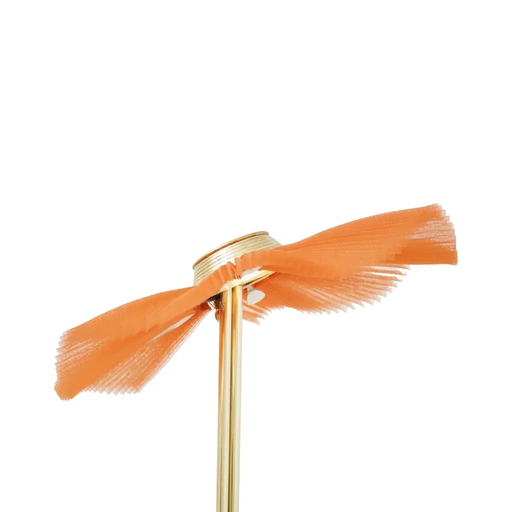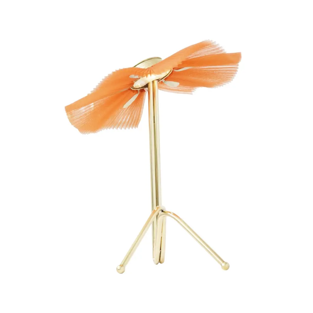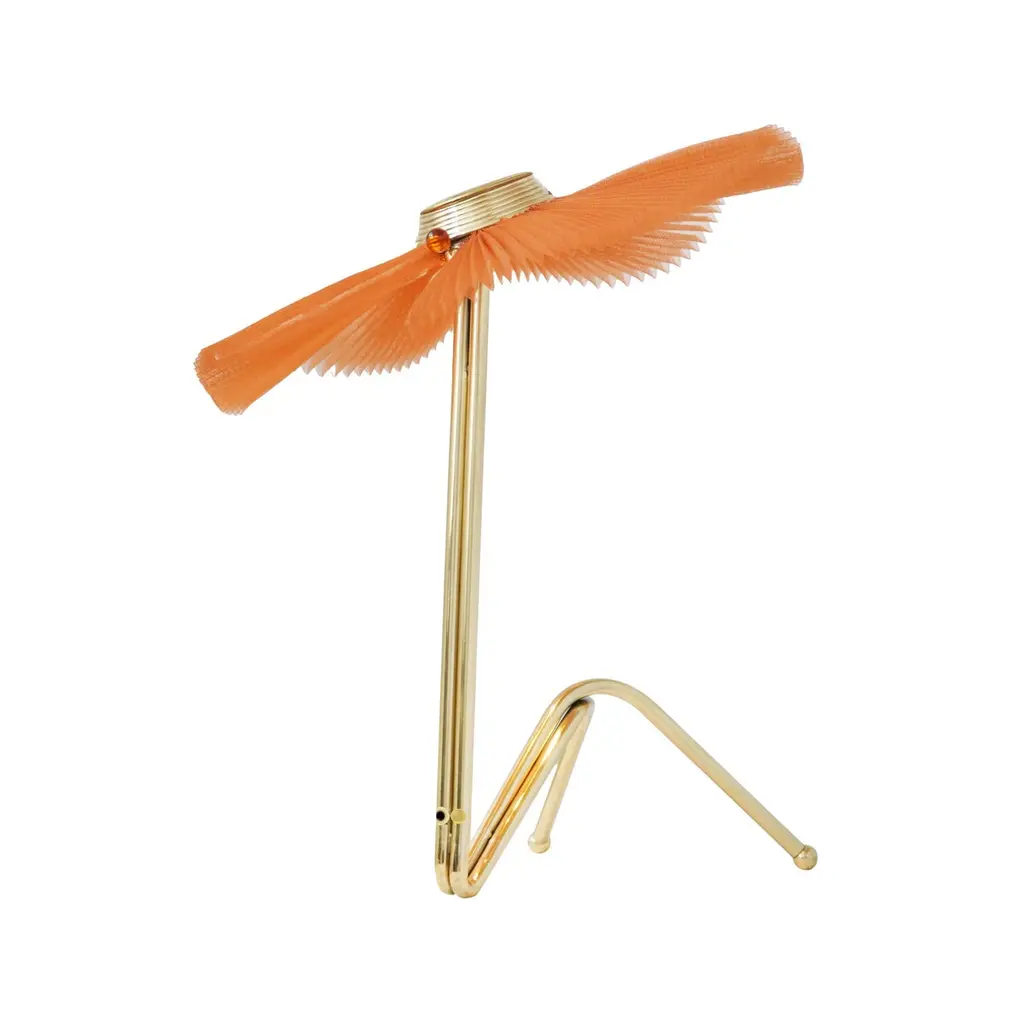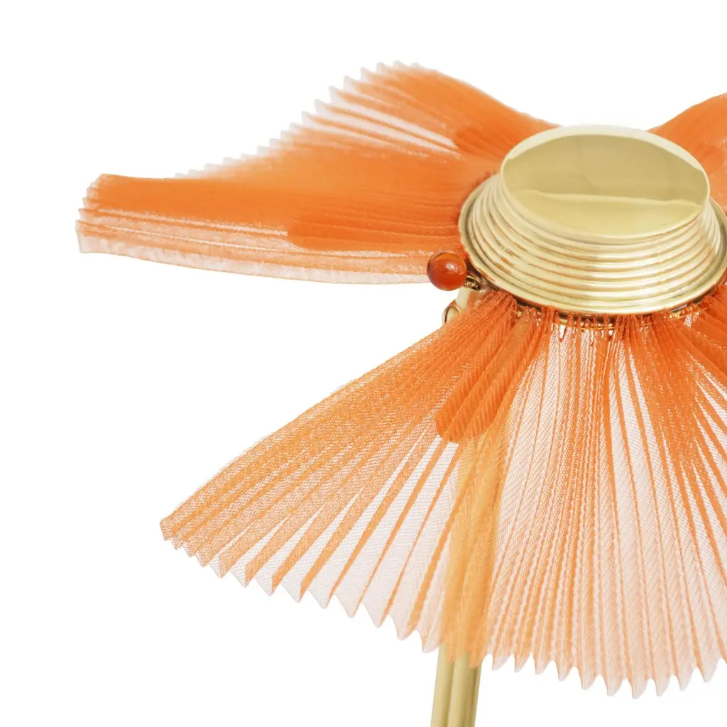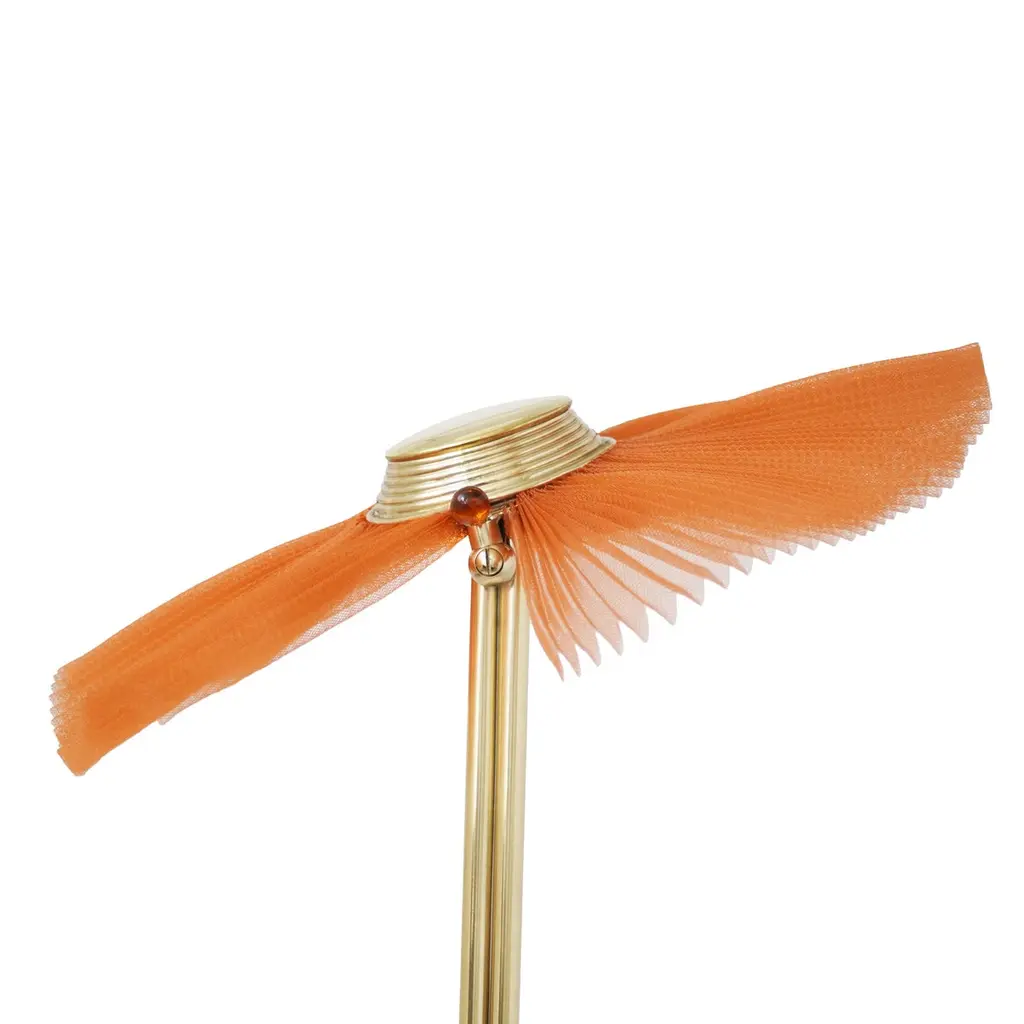 FREEVOLLETwist and go! The Freevolle Lady lamp captures a quiet elegance, with its refined curves, delicate and airy silhouette, it moves with grace—striking the perfect balance between structure and freedom.The timeless “Made-in-Italy” celebrates the graceful Italian manufacture and offers new life expression at the Maison Sabrina Landini.Creativity explores new shapes achieving the essence, overcomes life-blood to appreciate the vibrant happiness, an ode to movement, like a free dance, welcomes the upcoming Lady-lamp "Freevolle".The lampshade seems to flight like colored skirts raised up by a puff of wind.Brass shimmers by its sinuous shape and winkes at the captivating twist of legs and its turning head Freevolle, the exquisite Lady-lamp that adds a touch of glamour and identity to home interiors. Lampshade Colors : red, lemon, gold, tree, orange, ivoryGlass diffuser and silvered crystal tipBrass body polished finishWiring : Flat led 1xmax 8W US electrified