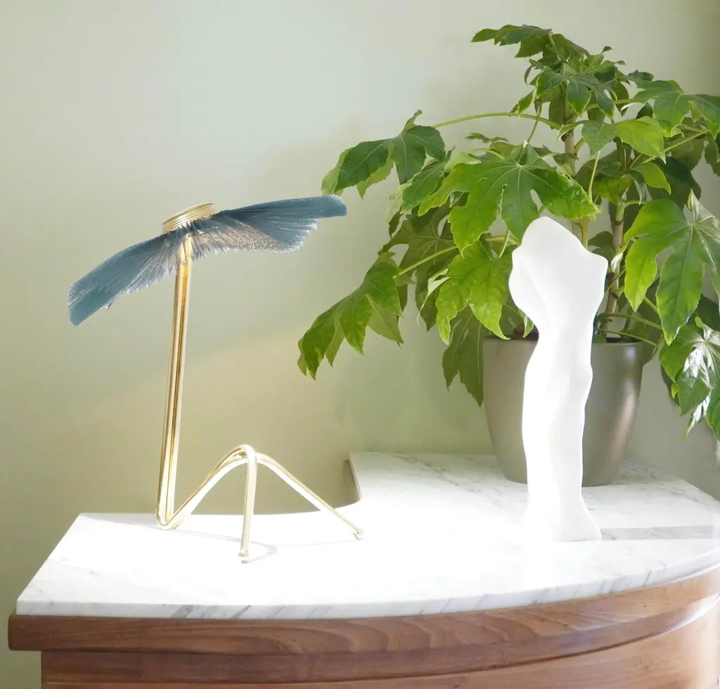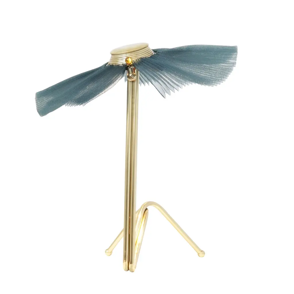 FREEVOLLETwist and go! The Freevolle Lady lamp captures a quiet elegance, with its refined curves, delicate and airy silhouette, it moves with grace—striking the perfect balance between structure and freedom.The timeless “Made-in-Italy” celebrates the graceful Italian manufacture and offers new life expression at the Maison Sabrina Landini.Creativity explores new shapes achieving the essence, overcomes life-blood to appreciate the vibrant happiness, an ode to movement, like a free dance, welcomes the upcoming Lady-lamp "Freevolle".The lampshade seems to flight like colored skirts raised up by a puff of wind.Brass shimmers by its sinuous shape and winkes at the captivating twist of legs and its turning head Freevolle, the exquisite Lady-lamp that adds a touch of glamour and identity to home interiors. Lampshade Colors : red, lemon, gold, tree, orange, ivoryGlass diffuser and silvered crystal tipBrass body polished finishWiring : Flat led 1xmax 8W US electrified