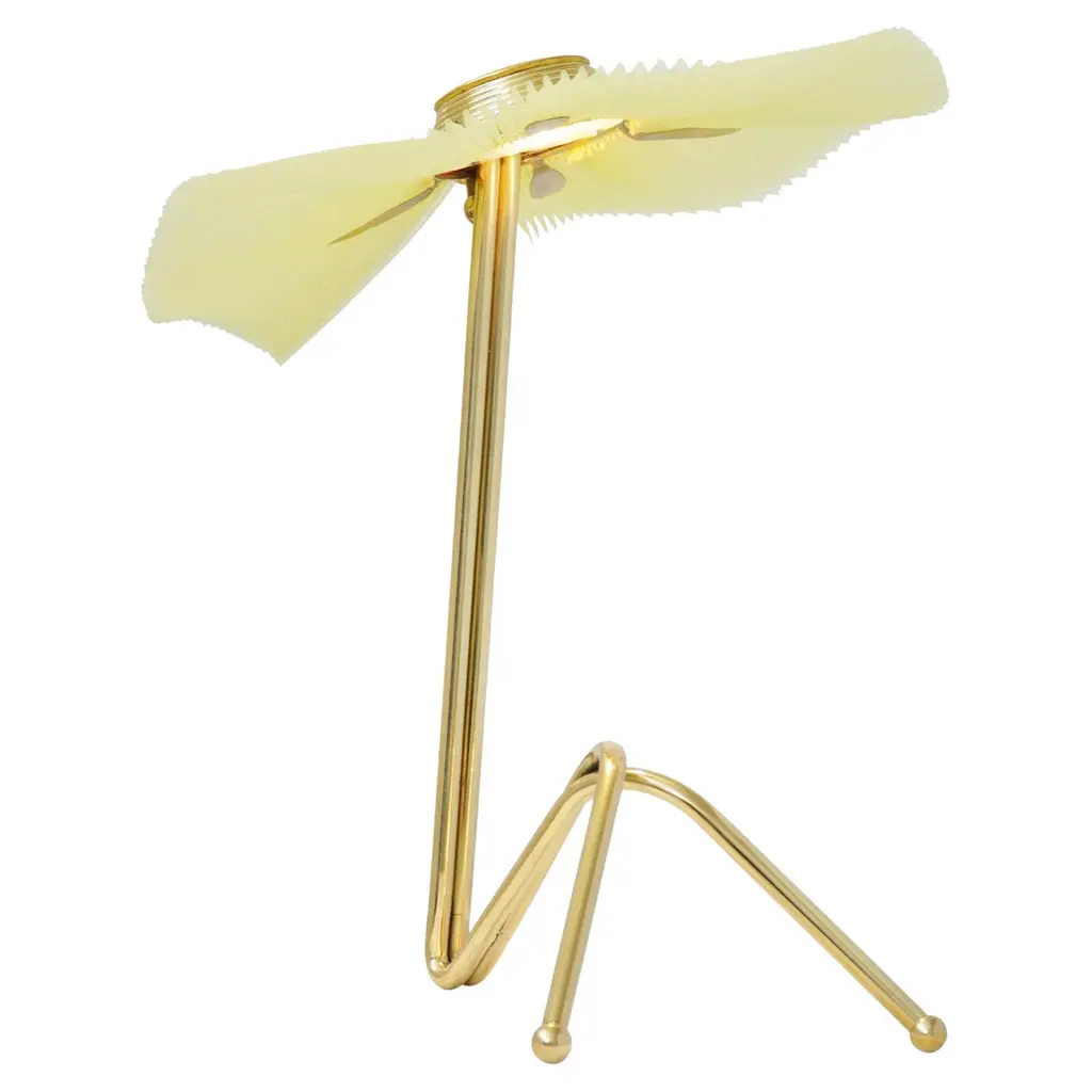 "Freevolle" Sculpture Table Lamp, Ivory Lampshade, Brass Body