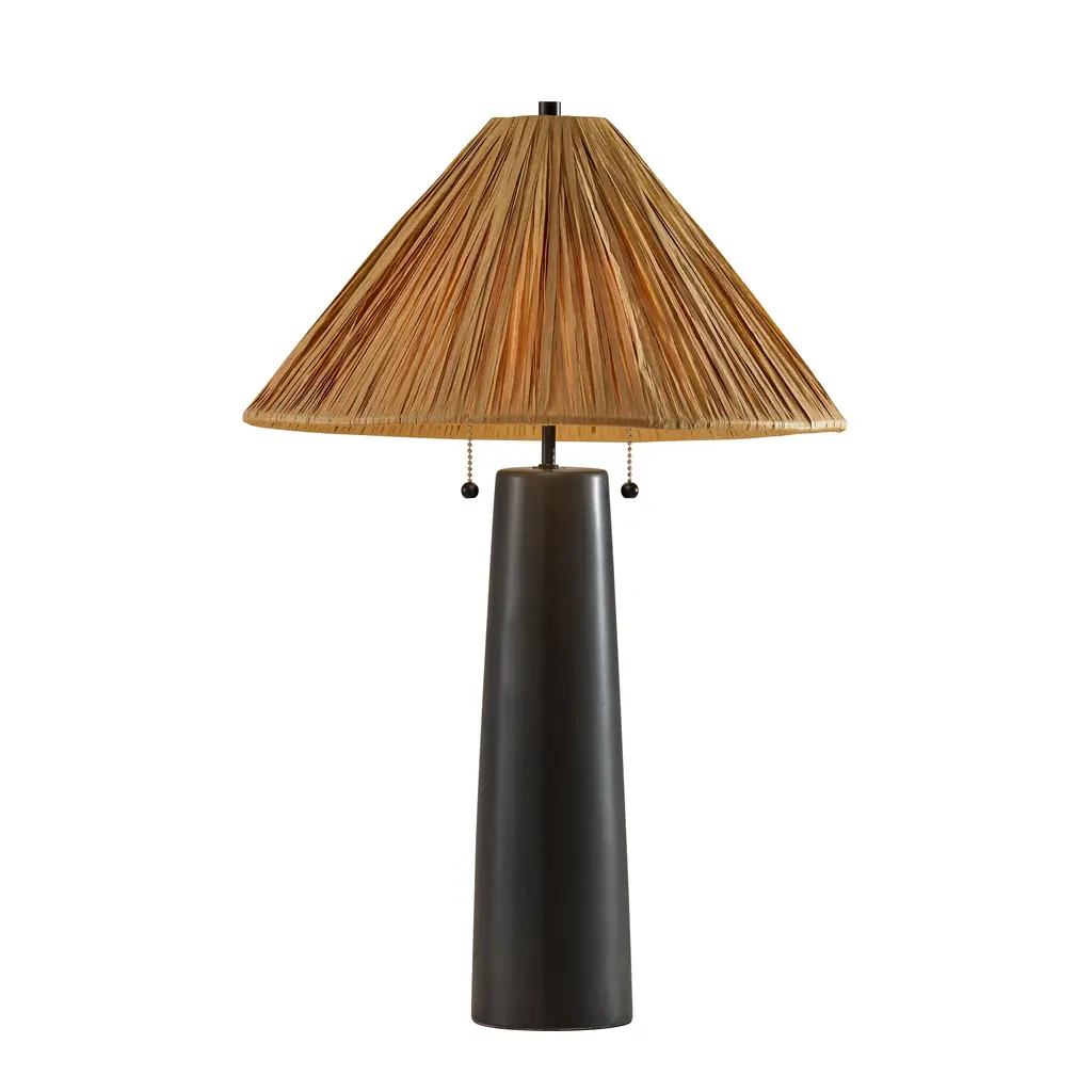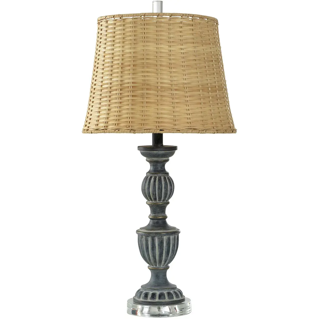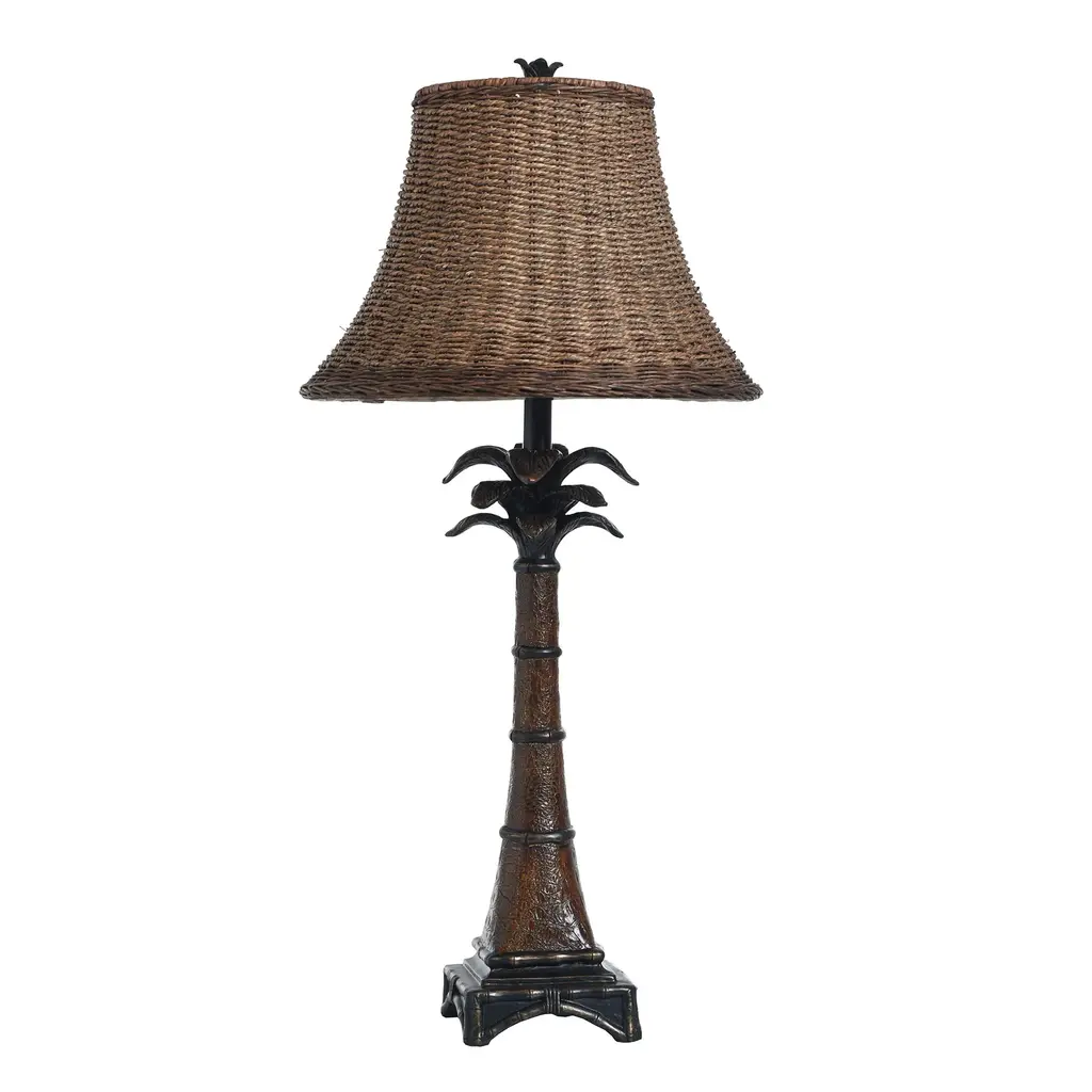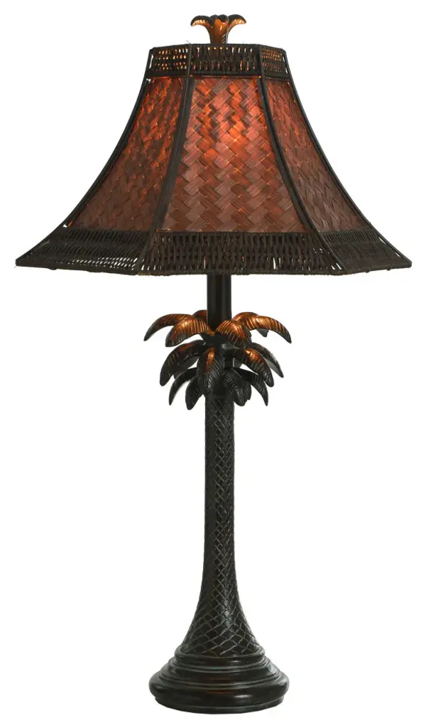 Accent your decor with this lovely Table Lamp.Features: Finish: Dark BrownShade Finish: BrownMaterial: SteelShade Material: Woven RattanLength: 16 inchesWidth: 16 inchesHeight: 26 inchesVoltage: 120VWattage: 60Safety Rating: Dry Location - This item is rated for dry locations, meaning it can be used in an indoor area that is not normally subject to dampness. May include a location subject to temporary dampness provided ventilation is adequate to prevent any accumulation of moisture such as the bathroomBulb(s) Included: NoBulb Type: IncandescentNumber of Bulbs: 1Due to lighting and monitor differences, actual colors and finishes may vary slightly from what appears online.