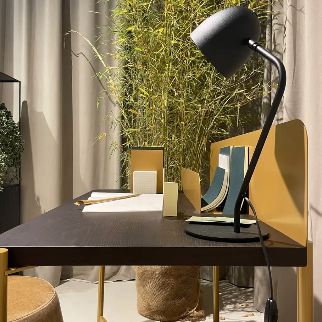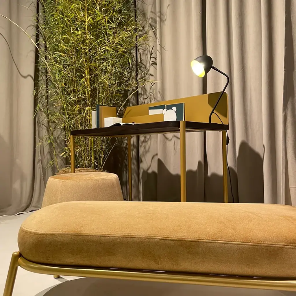 Frida is the new bedside lamp by Memedesign. Memedesign introduces a bedside lamp / coffe table lamp as an additional furnishing accessory with the aim of proposing a "MEME" mood, where different objects are combined with each other to create coordinated environments in terms of style and design. Frida is an ideal lamp for lovers of 'loft' style. The black metal frame is a wonderful decorative element for industrial interiors. Frida is ideal as a reading light and therefore particularly suitable for living rooms and bedrooms. Adjustable and swivelling. Only available in black. The inside of the cover is painted gold, which ensures a warm light beam suitable for reading and relaxing. Supplied without bulb.Material: Frame: metal + plastic Cover: black metal, inside painted in gold Finishing: Only available in black (outside) / inside of the cover in gold colourTechnical characteristics: - Dimensions: lamp height cm 48 - Dimensions: lamp depth cm 25 - Base diameter: cm 17 - Bulb socket: E27 - Bulb voltage: LED max 15W (bulb not included) - CE marking