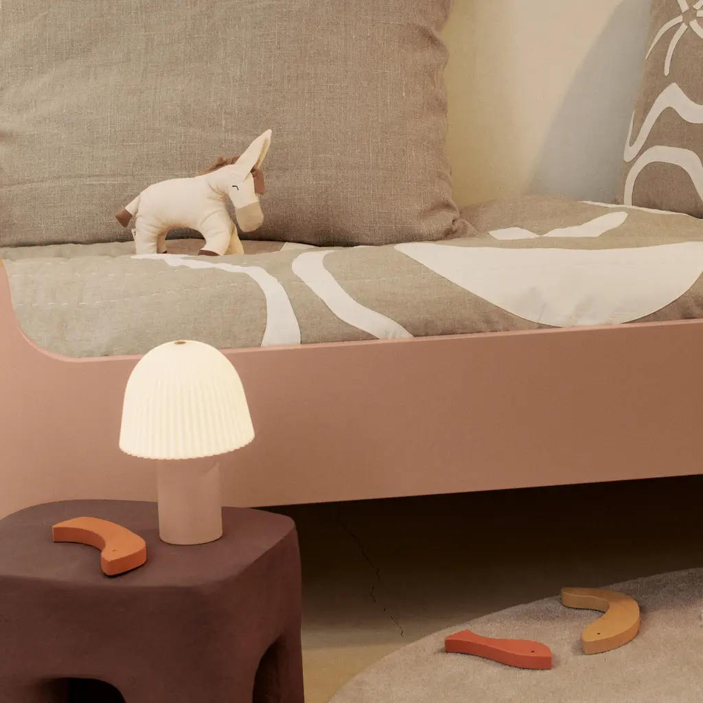 The Frill Portable Lamp from Ferm Living combines practicality with a sophisticated touch, making it the ideal addition to a cozy living space or child's room. Its stable base and fluted shade add depth and texture to the design, creating a warm and cozy atmosphere. Elevate your child's space with this charming and functional lamp. Highlights