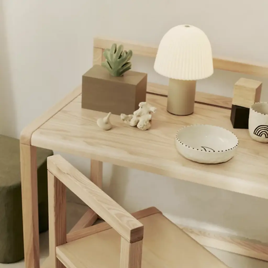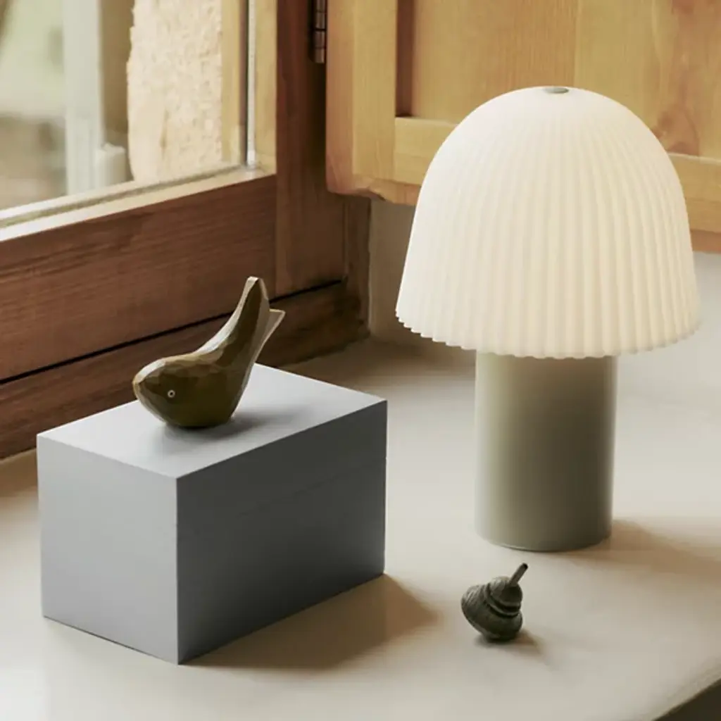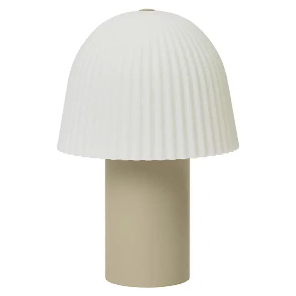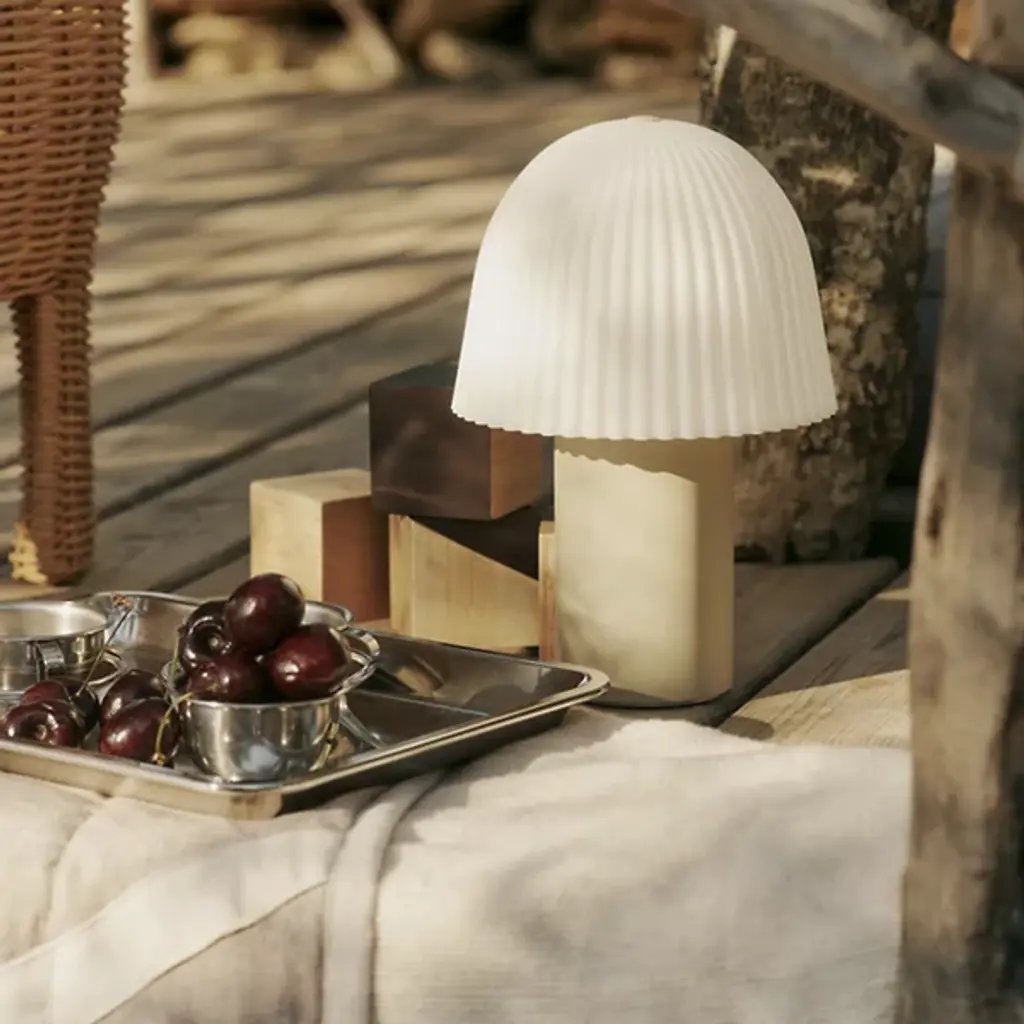 Frill Rechargeable LED Table Lamp from ferm LIVING is all about being stylish and steady. Matching rock-steady functionality with a refined design element, it uses a powder-coated iron base capped by a rounded dome shade made from High-Density Polyethylene. The rechargeable LED inside is dimmable, casting expressive downlight onto the fluted surface of the iron body while allowing ambient warmth to emanate outward, adding expressive charm to any inside surface.