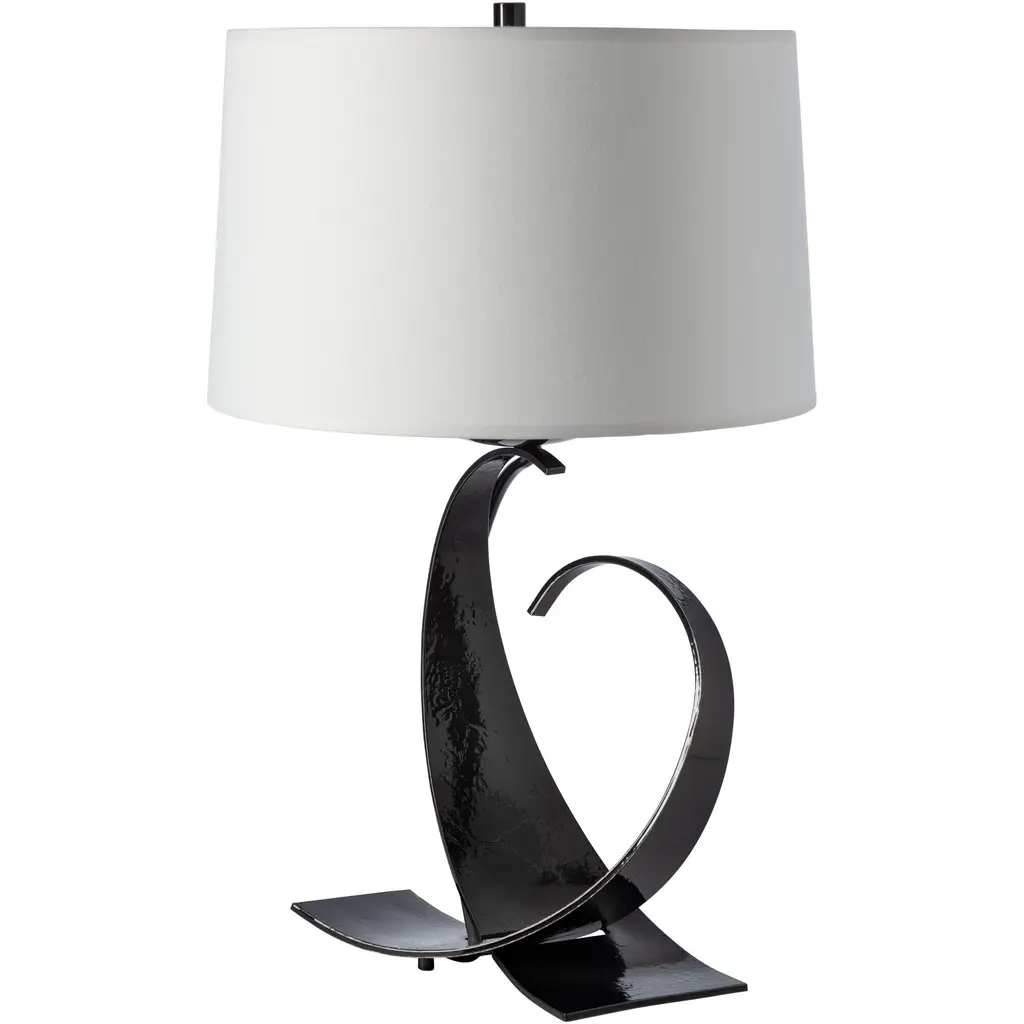 When this table lamp was introduced, it included impressions in the steel created by a fuller hammer. Today, the heavy steel of our Fullered table lamp still comes in full curves, but not fullered curves. Forged by artisans here in Vermont, each piece is unique.