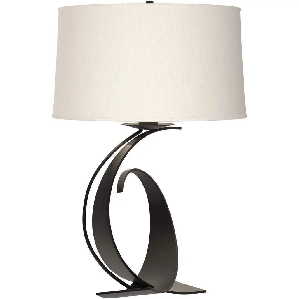 Elegant sweeping lines, asymmetrical design and beautiful Vermont craftsmanship all come together in Hubbardton Forge's Fullered Impressions Large Table Lamp. Create a true statement in any room of your home with this hand-crafted lighting fixture.Customize with your choice of translucent or opaque metal finish and style of lamp shade. Carefully made using environmentally safe metal forging techniques. Powder coated finish.Shown in Dark Smoke finish