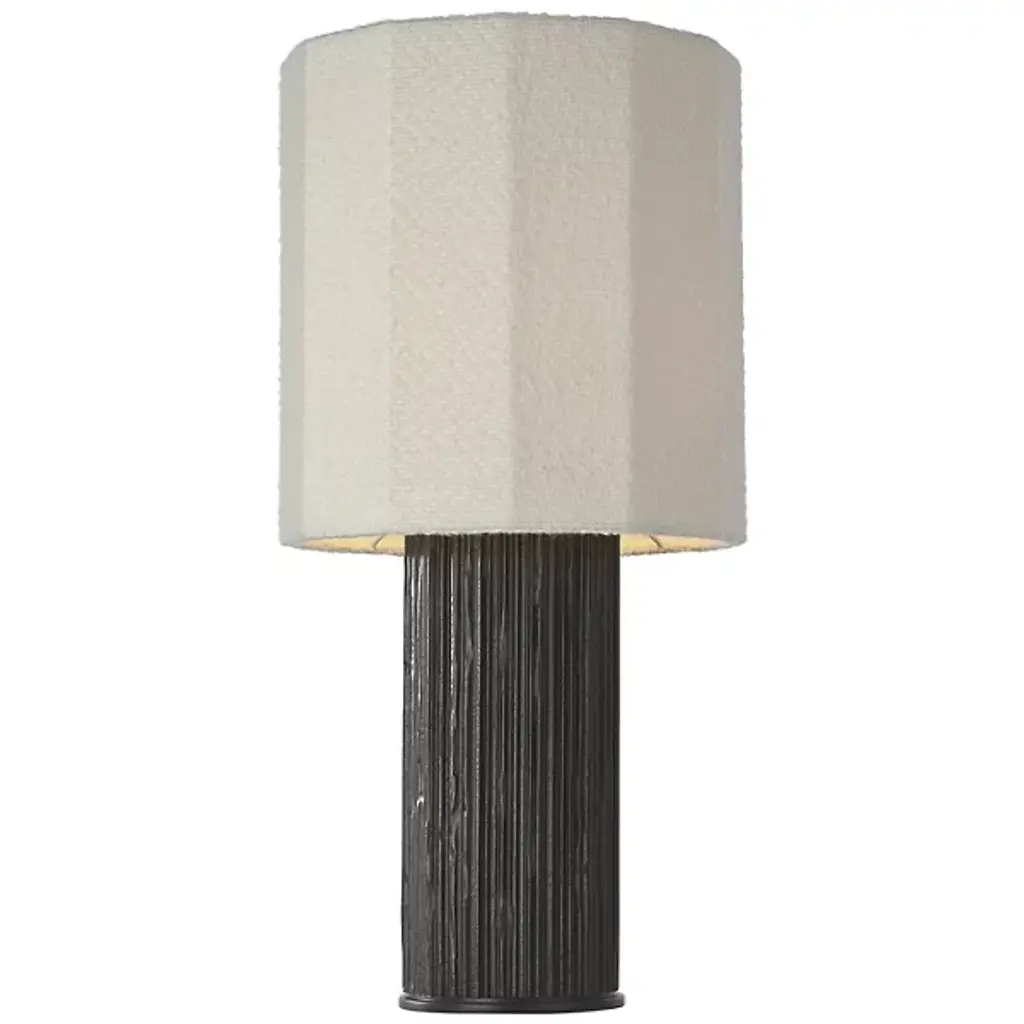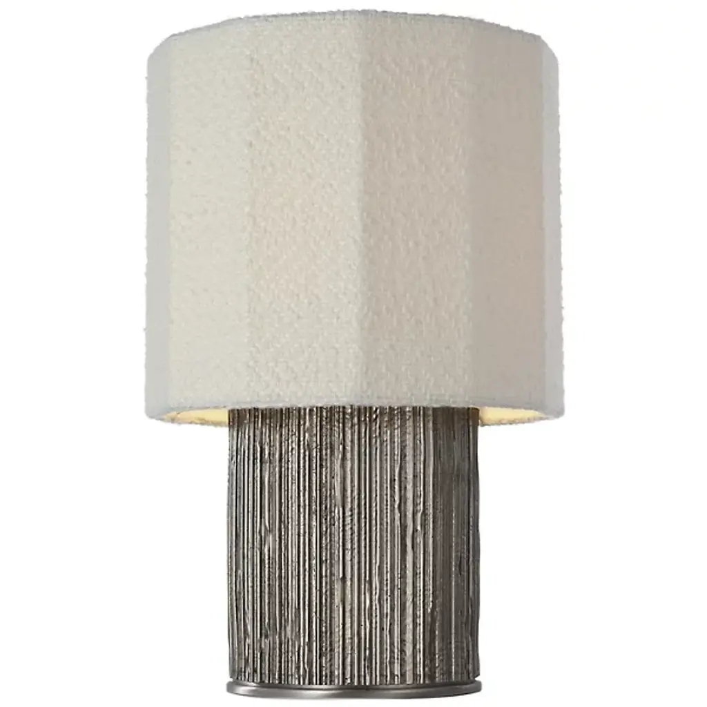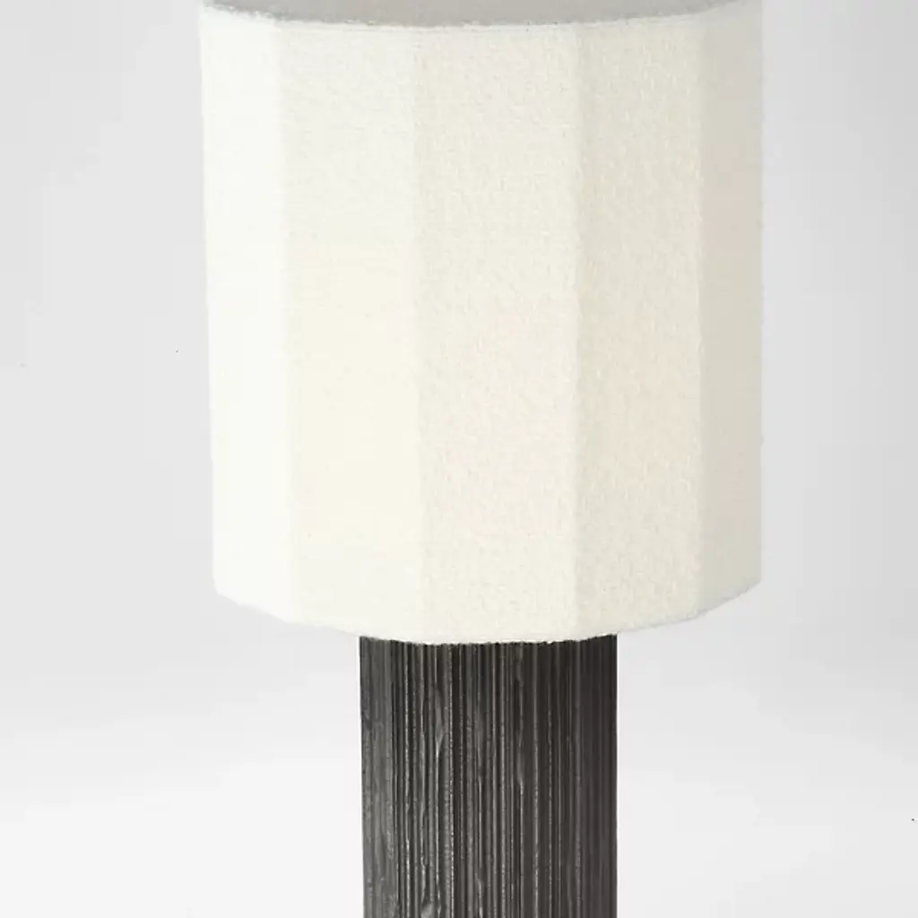 The Fumar Table Lamp from Visual Comfort Signature rejects predictable forms in favor of unconventional textural patterns. The aluminum base features precise vertical ridges that catch and redirect ambient light throughout the day. Topped with a boucle shade that filters illumination to a gentle glow, this lamp speaks to minimalist aesthetics without becoming austere. The creative mind of Anne-Marie Barton is evident in the balanced relationship between the structured base and the textured shade. When illuminated, subtle shadows emphasize the dimensional quality of the base, creating a constantly changing interplay as you move around the room.