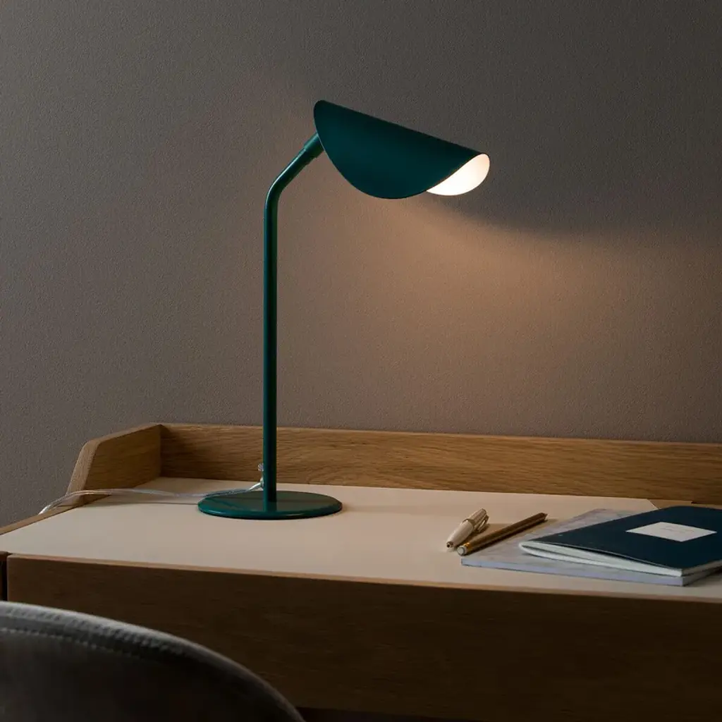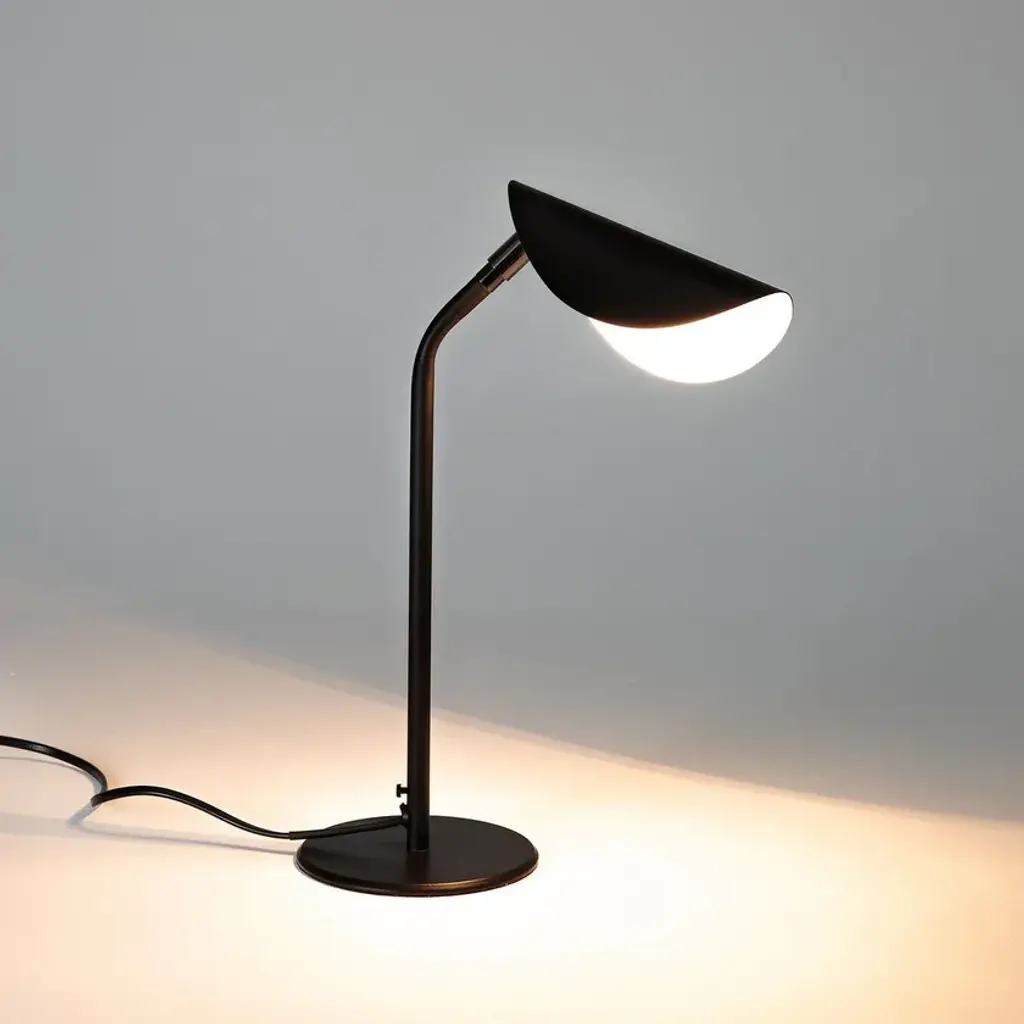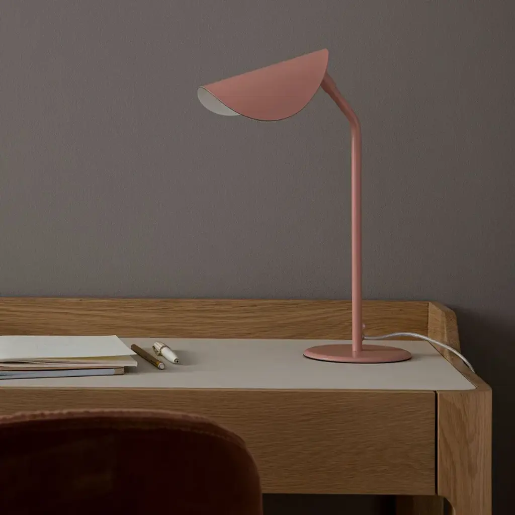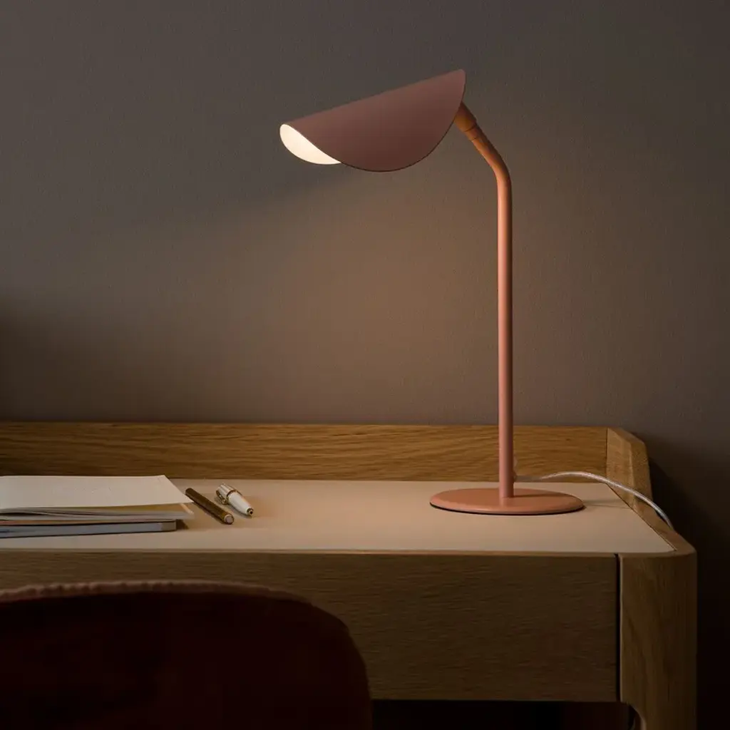 Funambule is characterised by a light line, inspired by nature thanks to its adjustable leaf-shaped lampshades. In this table version it is offered in a small format to fit on a coffee table or bedside table.Made of metal with matt black / rose clay epoxy finish.G9 lamp holder for G9 LED 5W maxi bulb (not supplied).Adjustable lampshade.Compatible with energy class A bulbs.