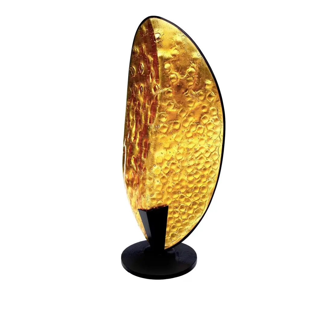 Playfully inspired by mushrooms' bold proportions, this table lamp pairs exceptional lighting to a mesmerizing decorative function thanks to the mesmerizing reflections caused by the light source. The glass body is mouth-blown directly into a specific mold, which impresses a pinecone-like texture onto the surface, its charm increased by the fluidity of its voluminous design.