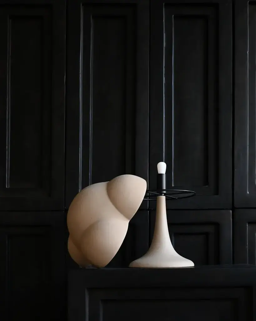 Fungus Table Lamp is a ceramic table lamp. Fungus features a ceramic lampshade placed on a metal structure, mounted on a conical-shaped lamp base.Recommended light source: Pygmy - Matte porcelain - E14.