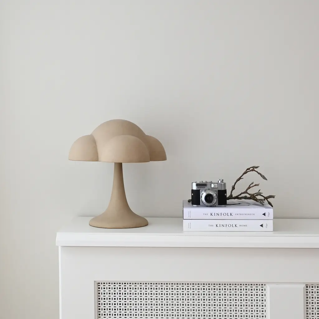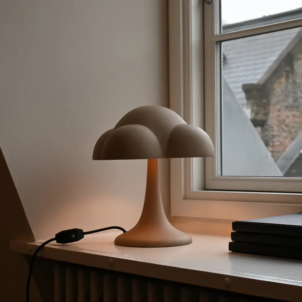 The Fungus Table Lamp showcases a distinctive mushroom-shaped design, creating a unique lighting experience within any interior space. Drawing inspiration from the design trends of the 1970s, the Fungus lamp reinterprets futuristic lighting concepts through the medium of ceramic craftsmanship. Crafted entirely from ceramic, Fungus places a strong emphasis on the innate beauty of this material, bringing attention to its tactile and textured surface. Nearly every component, excluding the metal frame, is meticulously handcrafted from ceramic. Given its hand-glazed nature, there may be subtle variations in colors, adding an individualized touch to each lamp.