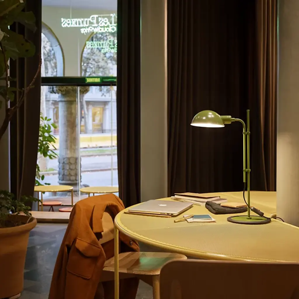 Designed by Lluis Porqueras, the Funiculi Table Lamp is a newly issued and scaled down replica of his iconic floor lamp that was originally issued in 1979. A disciplined adherent to the less-is-more branch of modern design, Porqueras strips away superfluous excess and retains the task essentials - the ability to adjust the height and angle of the shade. A balanced juxtaposition of primary shapes, the retro shade provides a contemporary counterpoint to the cylindrical (and rubber encircled) iron base.