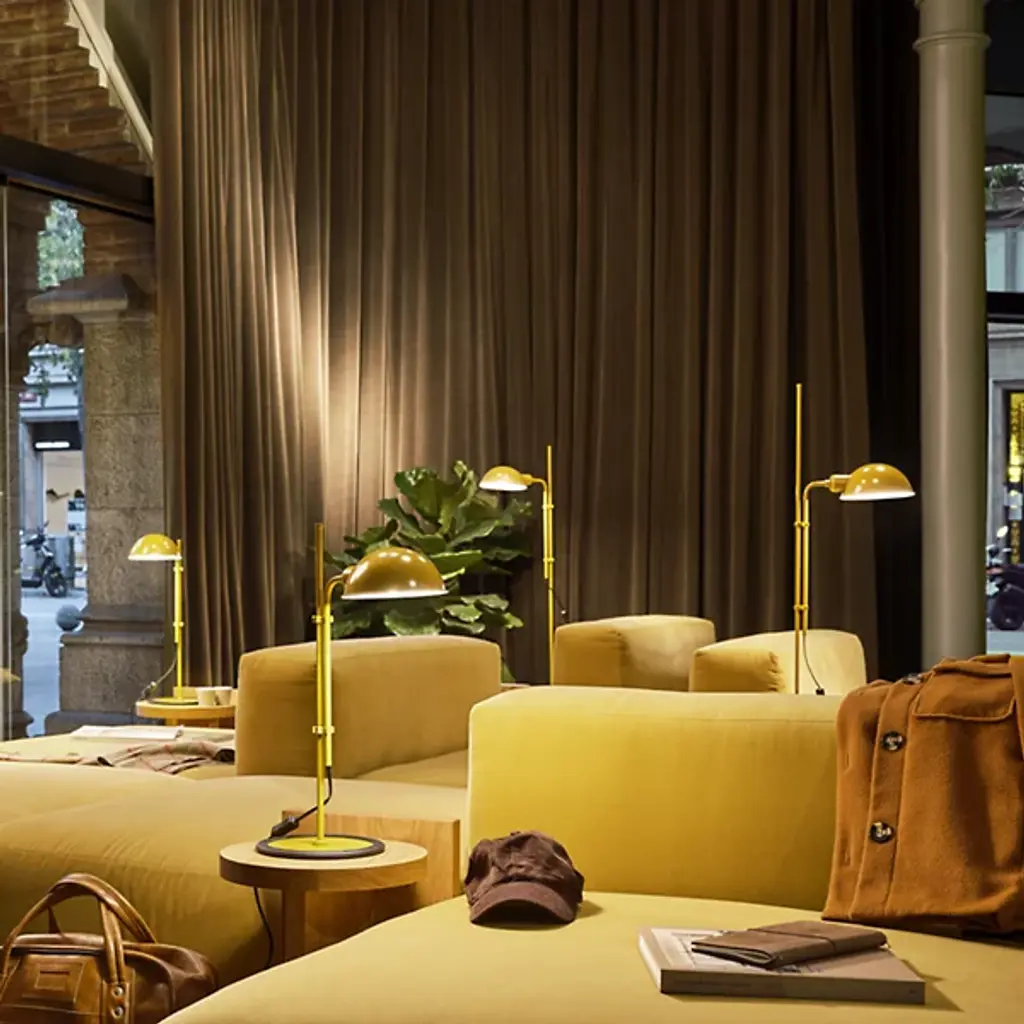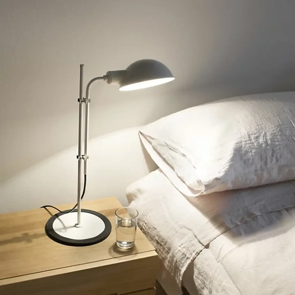 Designed by Lluis Porqueras, the Funiculi Table Lamp is a newly issued and scaled down replica of his iconic floor lamp that was originally issued in 1979. A disciplined adherent to the less-is-more branch of modern design, Porqueras strips away superfluous excess and retains the task essentials - the ability to adjust the height and angle of the shade. A balanced juxtaposition of primary shapes, the retro shade provides a contemporary counterpoint to the cylindrical (and rubber encircled) iron base.