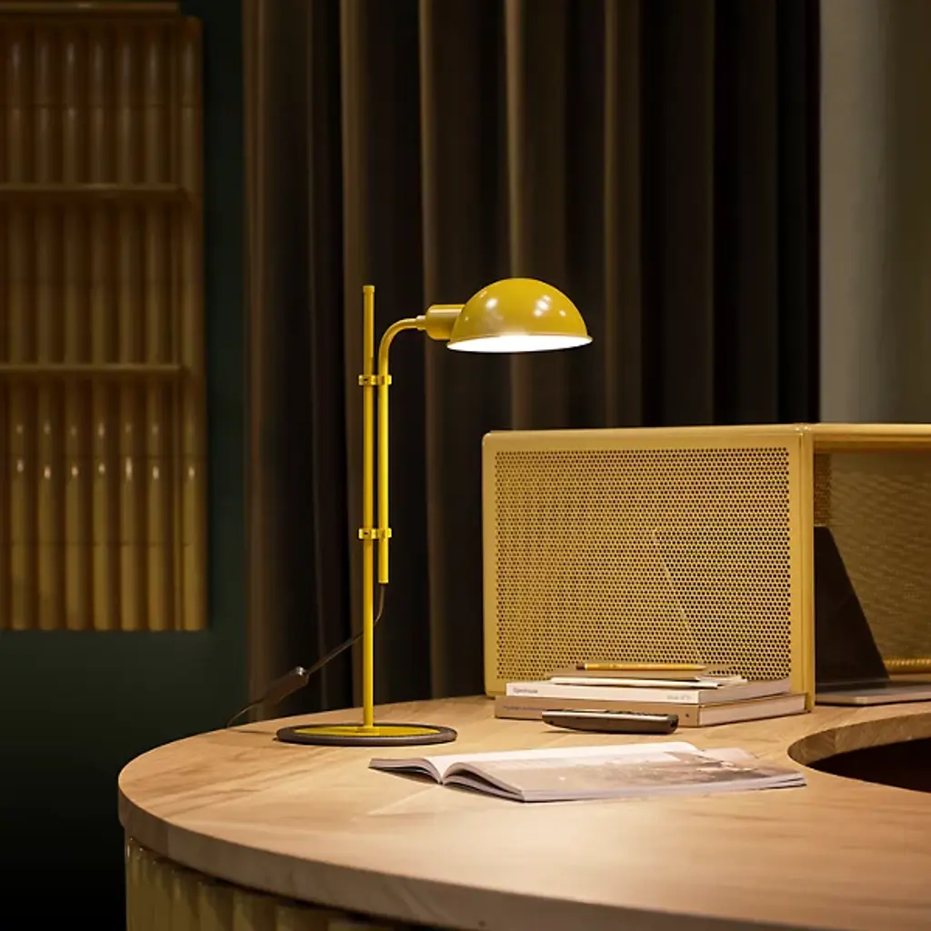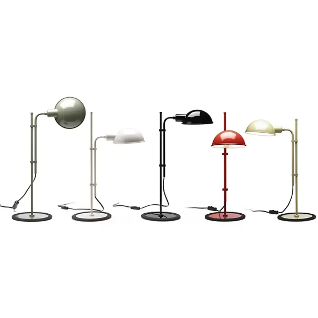 Designed by Lluis Porqueras, the Funiculi Table Lamp is a newly issued and scaled down replica of his iconic floor lamp that was originally issued in 1979. A disciplined adherent to the less-is-more branch of modern design, Porqueras strips away superfluous excess and retains the task essentials - the ability to adjust the height and angle of the shade. A balanced juxtaposition of primary shapes, the retro shade provides a contemporary counterpoint to the cylindrical (and rubber encircled) iron base.