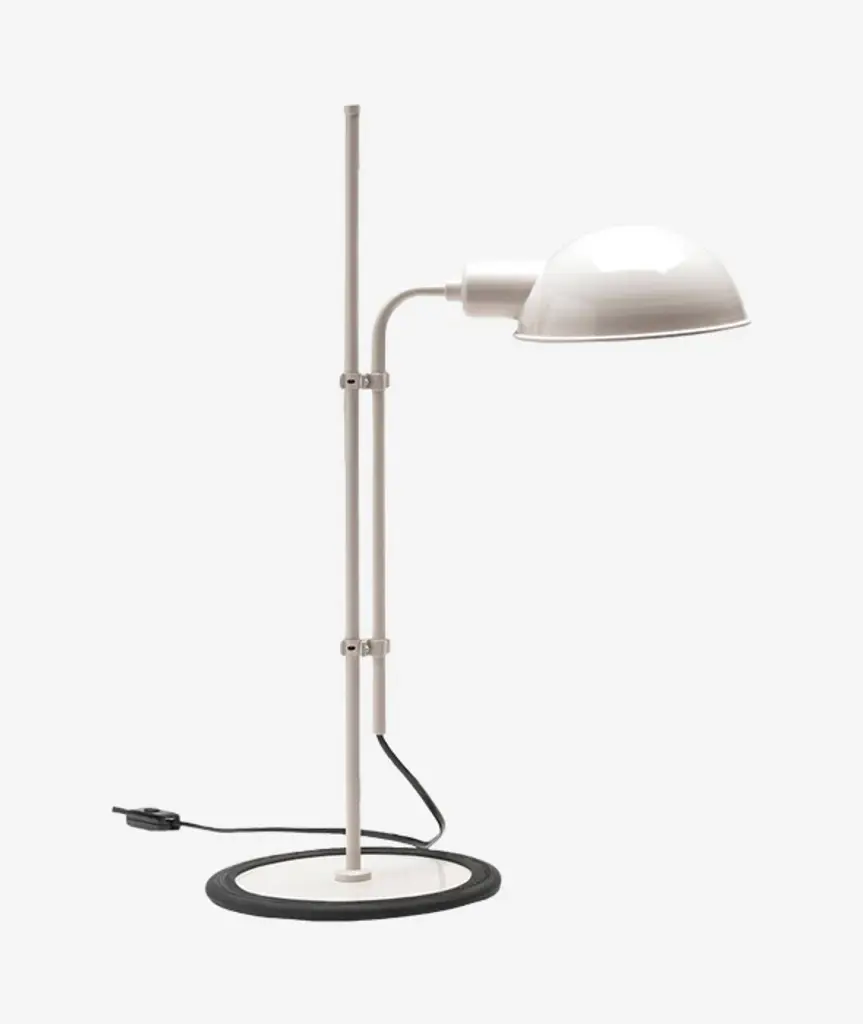 The name Funiculí comes from the concept of a “funicular” action – moving up and down. The mechanism for raising and lowering the lamp uses a pair of clips which make the height of the shade adaptable to any user’s needs. The shade itself can be rotated through 360 degrees to point the beam of light wherever it is required. The base of Funiculí is covered in rubber on the bottom to avoid the cold contact between the metal and table while adding stability to the lamp.