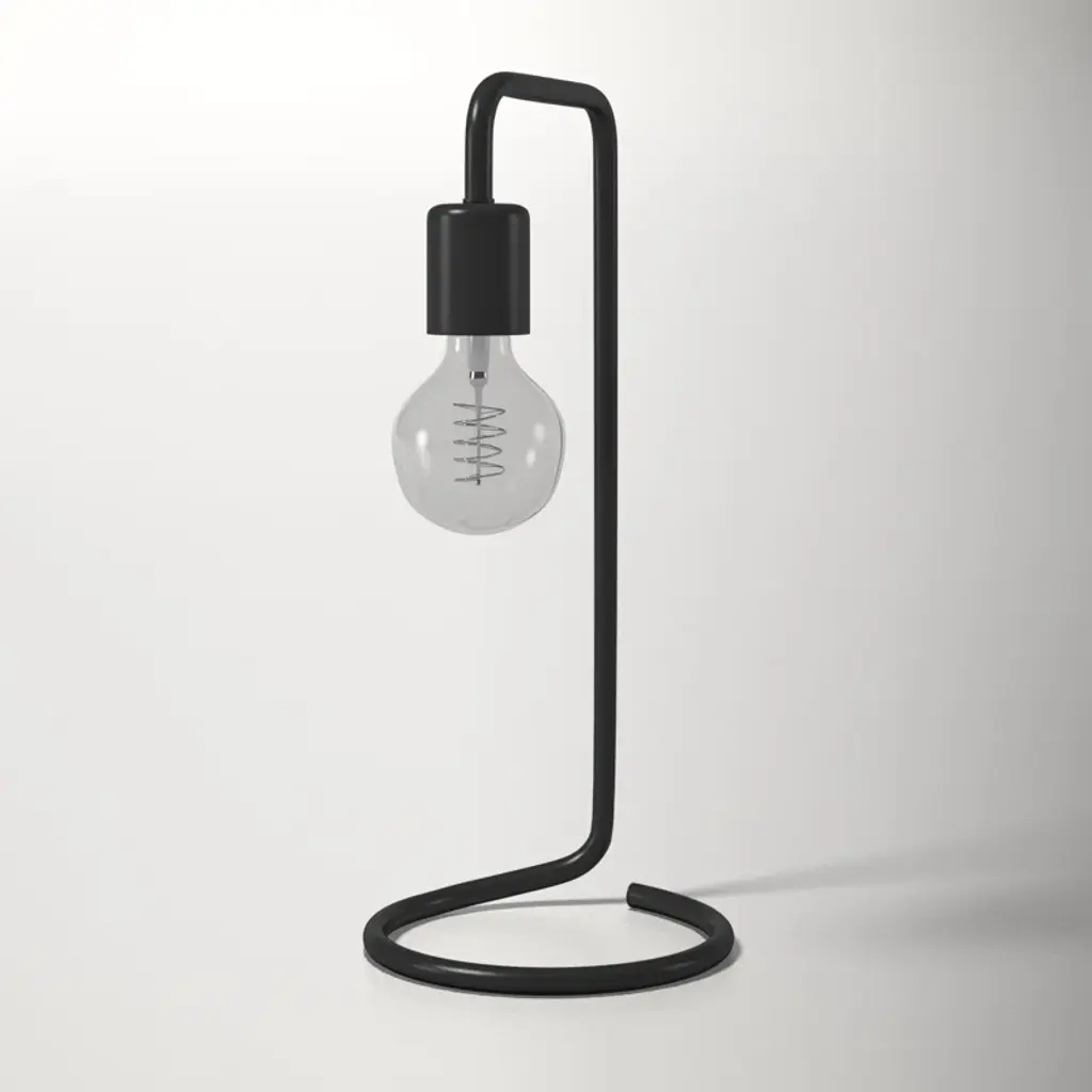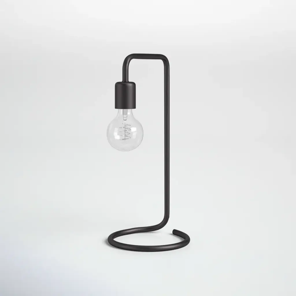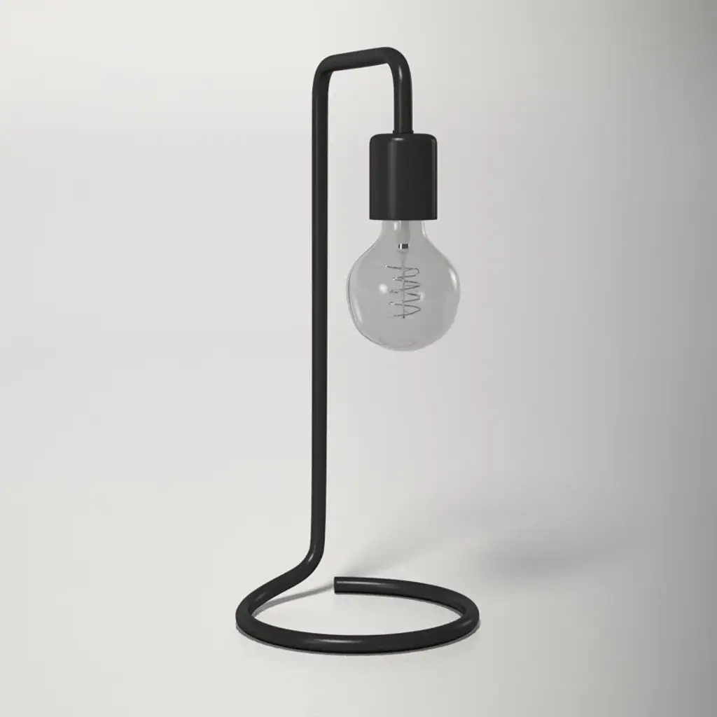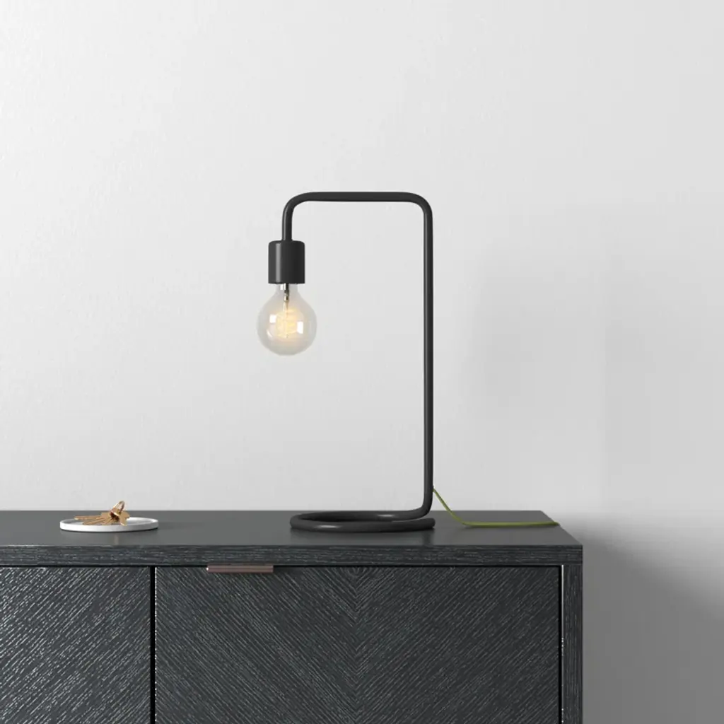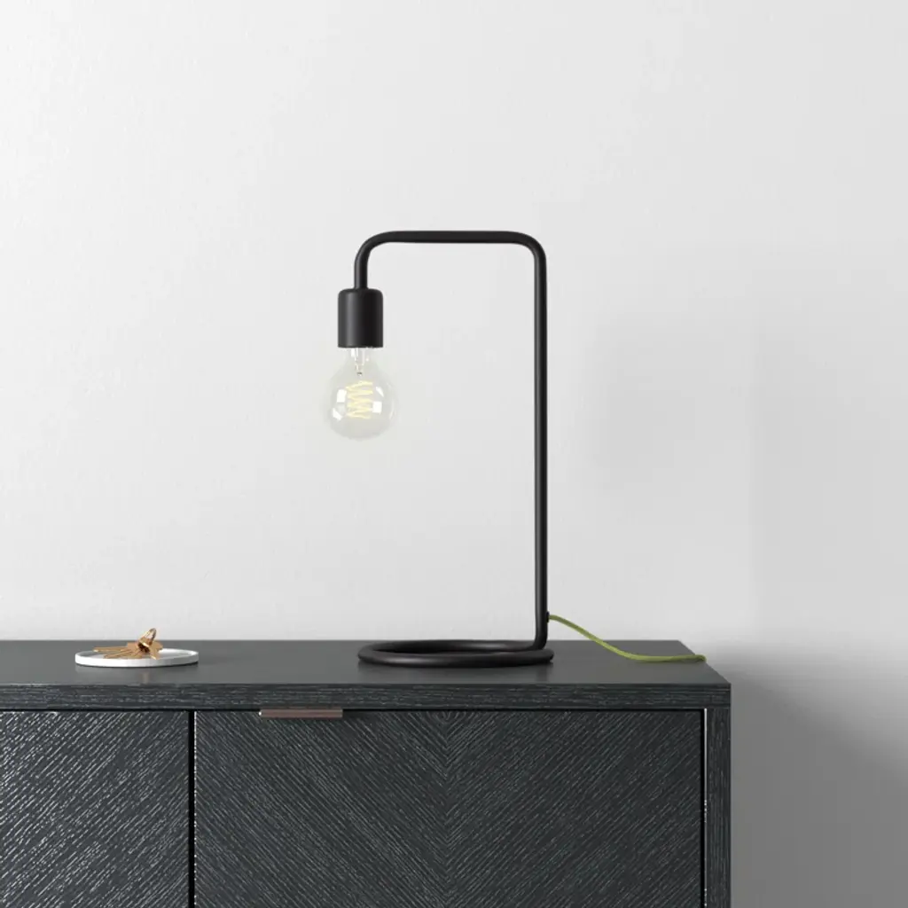 Vintage-inspired minimalism. The body + base of this pared-down desk lamp are crafted from a curved piece of tubular metal that flows seamlessly into a fabric-covered cord. The included filament bulb adds a retro look and casts a warm light that doesn’t require a shade.