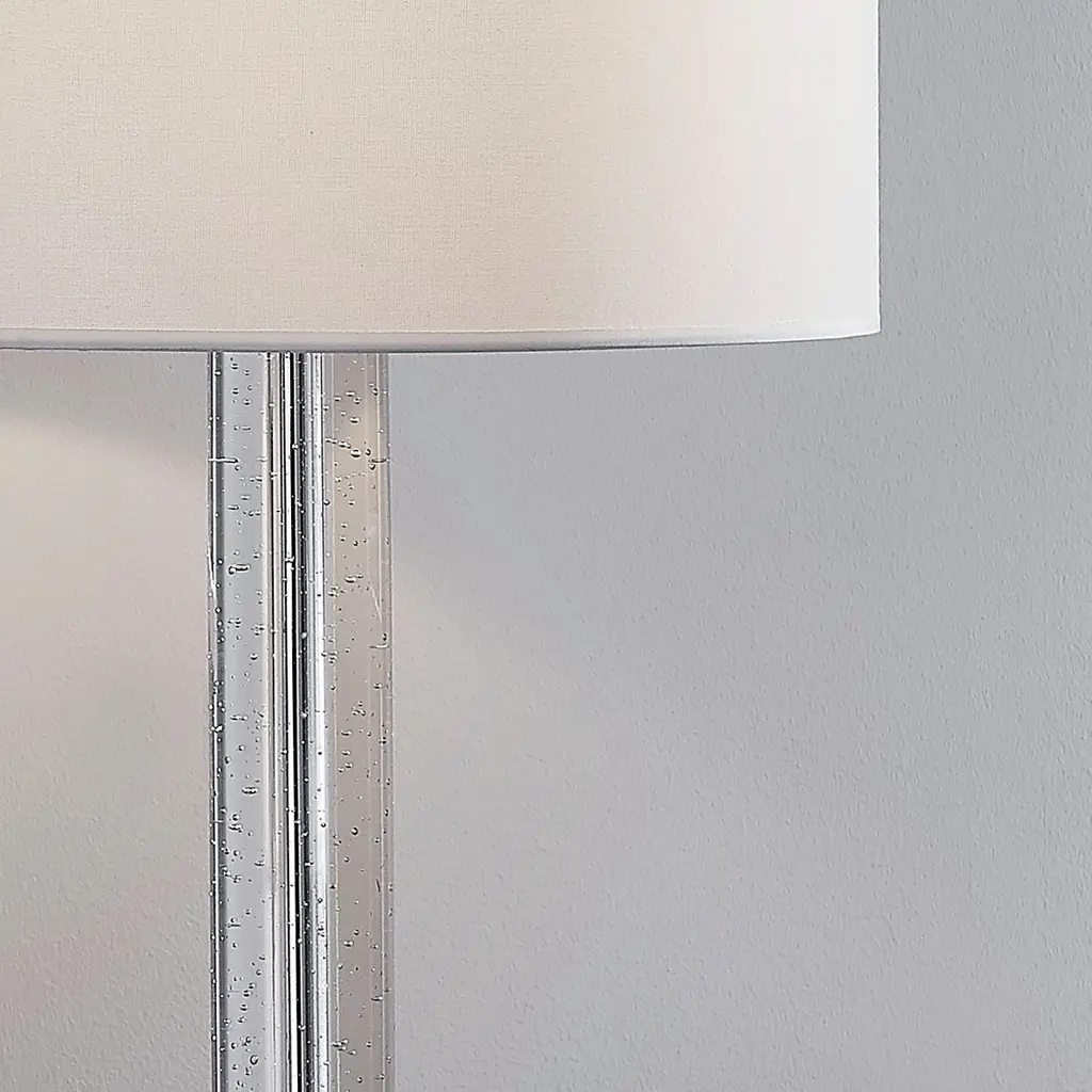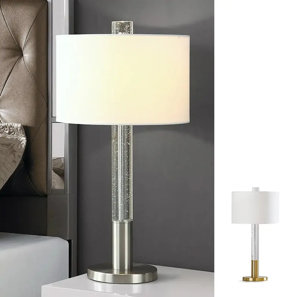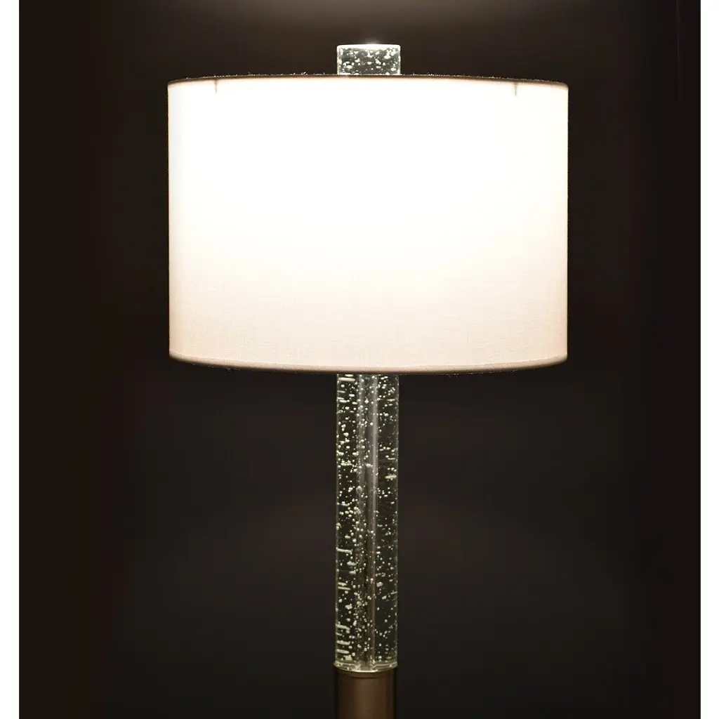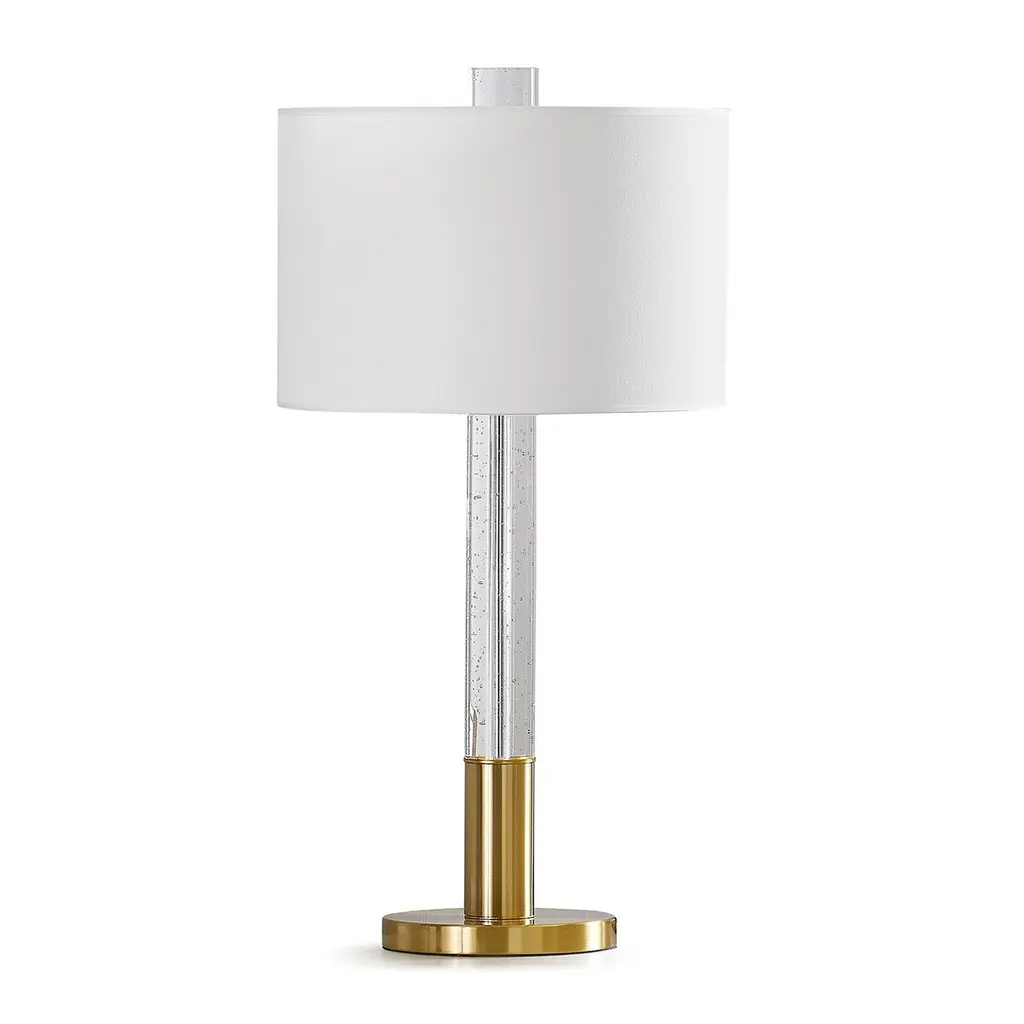 HOMEGLAM design, the FUSION lamps feature solid clear bubble crystal glass column and finial, brings a simple, solid and stylish illuminating effect perfect fits your simple and contemporary spaces.