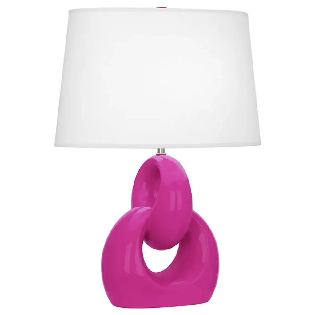Pumpkin Fusion Contemporary Table LampFeaturesNumber of bulb: 1Bulb type: AMax wattage: 150WVoltage: 120VSocket: Medium Plated Sheet E26Switch: Full Range DimmerSwitch location: SocketFinish: Pumpkin Glazed Ceramic with Polished Nickel AccentsShade: Oval Oyster Linen ShadeCord color: SilverUL listed: DryDimensionsShade dimensions: 17.5 inches top x 19.5 inches bottom x 12 inches down sideBase dimensions: 9.5 inches height x 9.25 inches width x 5 inches depth
