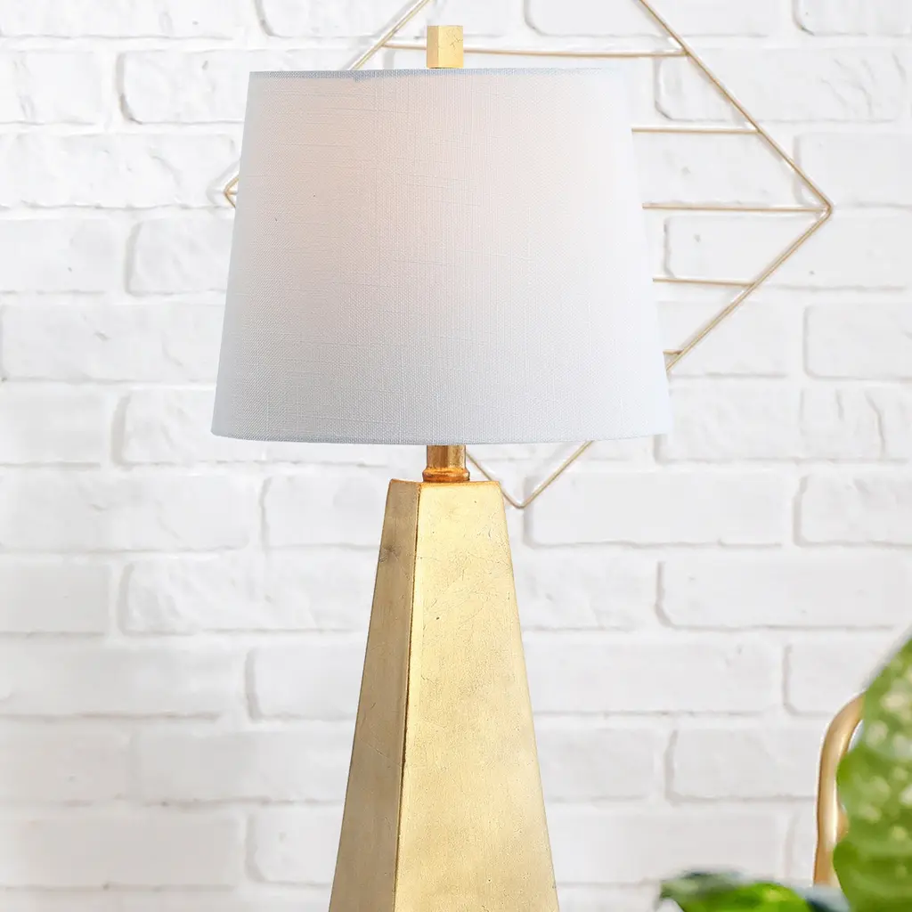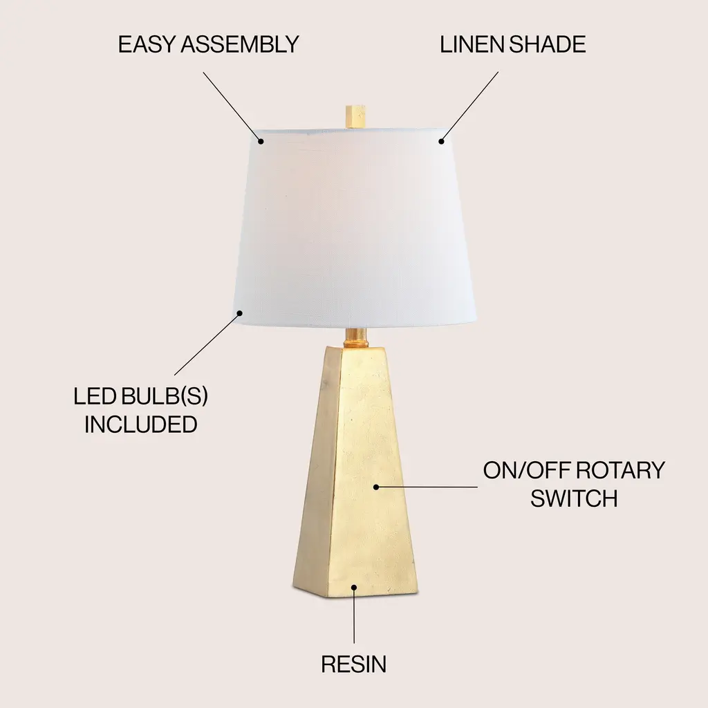 Modern and eye catching, this chic table lamp features an elegant resin base in mixed shades of white and gray to create the effect of marble, but without the inconsistencies inherent in natural stone. This lux finish, coupled with the geometric faceted pyramid silhouette, evokes a modern interpretation of a neoclassical design. The white fabric shade diffuses soft light into any living space, in contrast to the geometric edges of the lower design and the lamp is topped with a matching marbleized resin finial. Features:Dimensions:About us:You see a lamp.We see a decorative work of art.A perfectly curved shade casts a dramatic shadow on a floor. A silk cord you never want to hide. LED lightbulbs: as easy on the environment as they are on the eyes. The JONATHAN Y Lighting collection considers every detail from impeccably sourced materials to designer styling. And our prices are so attractive, we've transformed a functional necessity into a fashion accessory.JONATHAN Y Lighting - a fashion revolution in home decor.