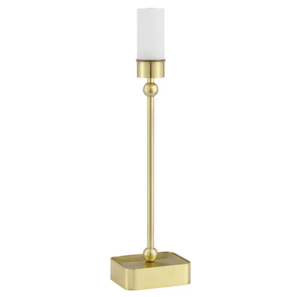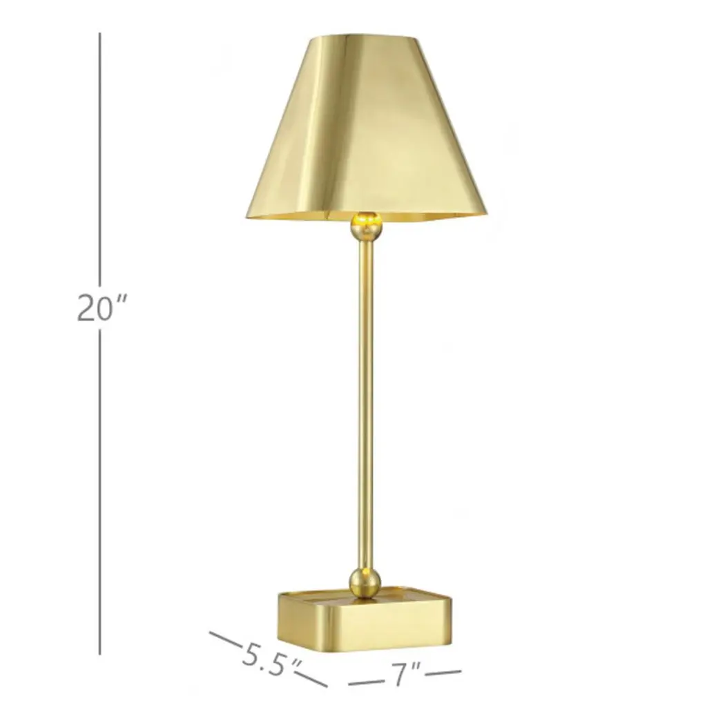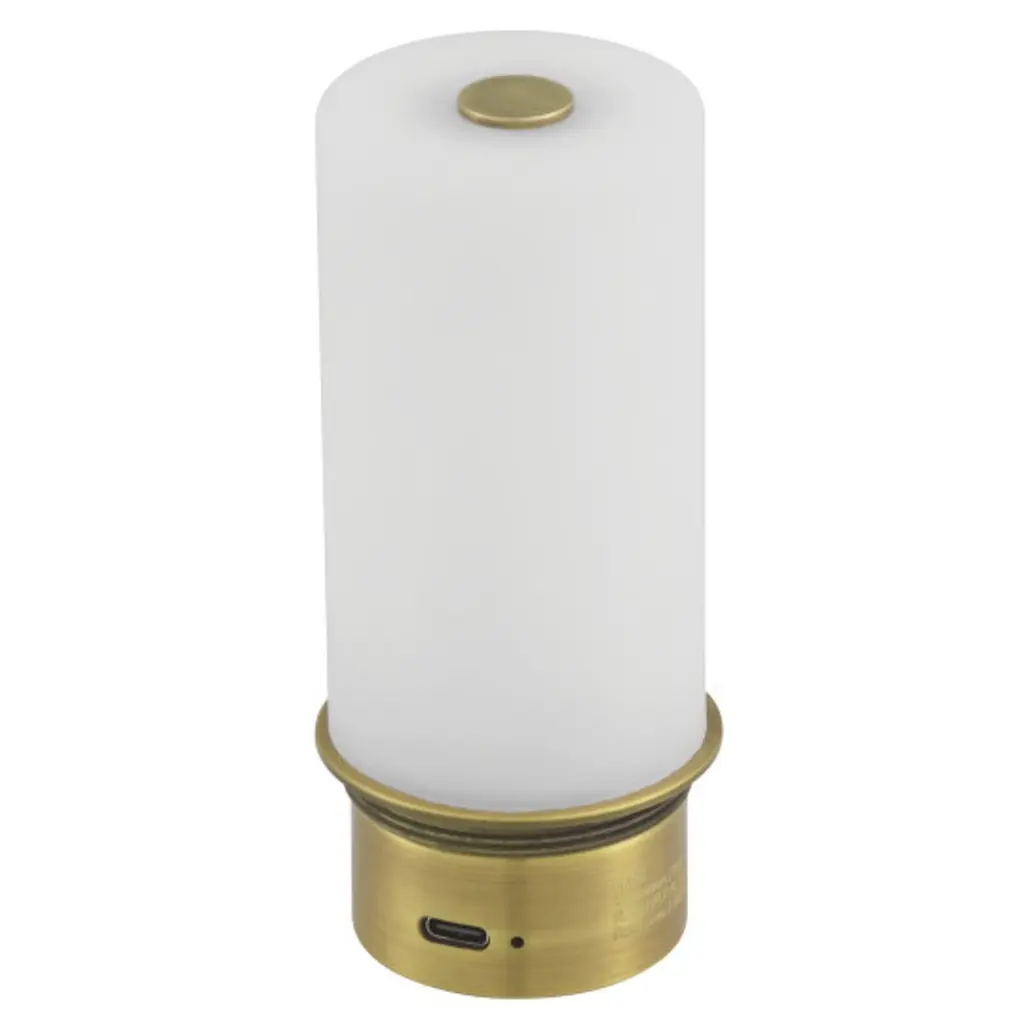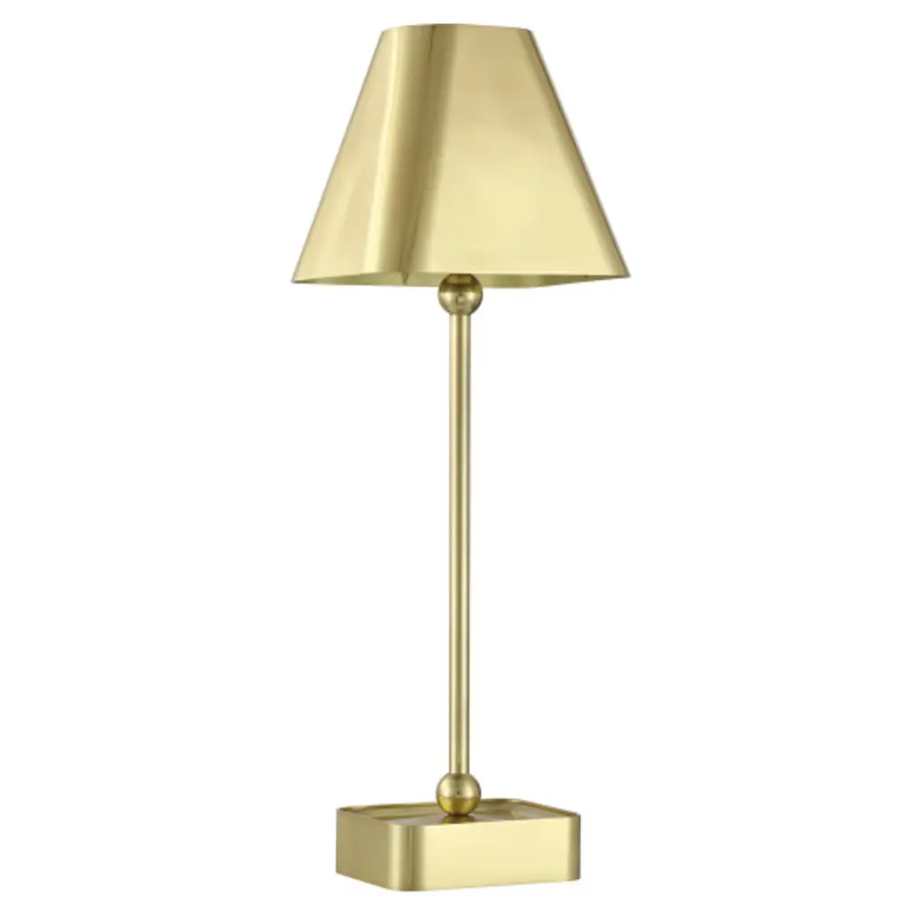 The Gadabout Cordless Table Lamp offers effortless versatility with its freedom to move. The rechargeable bulb sits atop the metal body, and the matching metal shade slides seamlessly over it. The on/off switch is conveniently located on the top of the bulb, and the shade is finished on the inside for a refined touch.