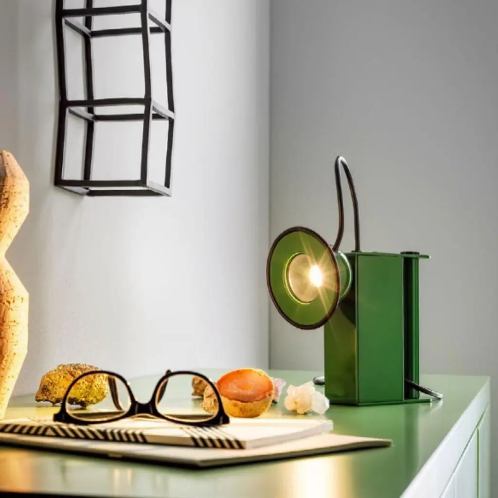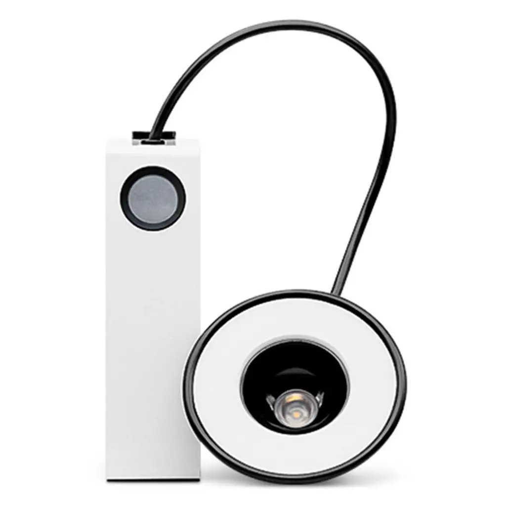 Gae Aulenti & Piero Castiglioni 'Minibox' table lamp in white for StilnovoFounded in 1946 in Milan, Stilnovo was one of the most innovative lighting companies in Italy during the Midcentury era, producing iconic pieces by such luminaries as Joe Colombo, Angelo Mangiarotti, Ettore Sottsass, Gaetano Scolari, Piero Castiglioni, Bruno Gatta and others. Stilnovo was relaunched in 2019 with a commitment to faithfully re-edition its legendary designs with uncompromising attention to detail, materials and craftsmanship.The 'Minibox' table lamp, originally designed by Gae Aulenti & Piero Castiglioni in the 1980's, was created as a playful rendition of a miner's 'torch.' The reflector, which houses a dimmable LED in this contemporary re-edition, attaches to the lamp's body with a magnet, providing the user endless choices and maximum flexibility with the light's direction and placement. Executed in painted steel box with PMMA diffuser housing the integrated magnet.Price per item. Available to order in unlimited quantities and in choice of black, white, red, green, gold. This listing is for the 'Minibox' table lamp in white for Stilnovo.In stock lead time 6-8 weeks. Out of stock can add an additional 8 weeks or more. Please note that lead times and inventory availability are subject to change without notice. For time sensitive orders, please contact us for current lead times prior to purchasing.Shipping cost quoted is per item and cannot be combined.Illuminated via integrated and dimmable LED behind PMMA diffuser, providing 8.5 watts with 600 lumens of 2700K color and a CRI of 90. Rated IP20. Powered by black cord 6.5' in length. This lamp is UL listed.Made to order.All sales are final.