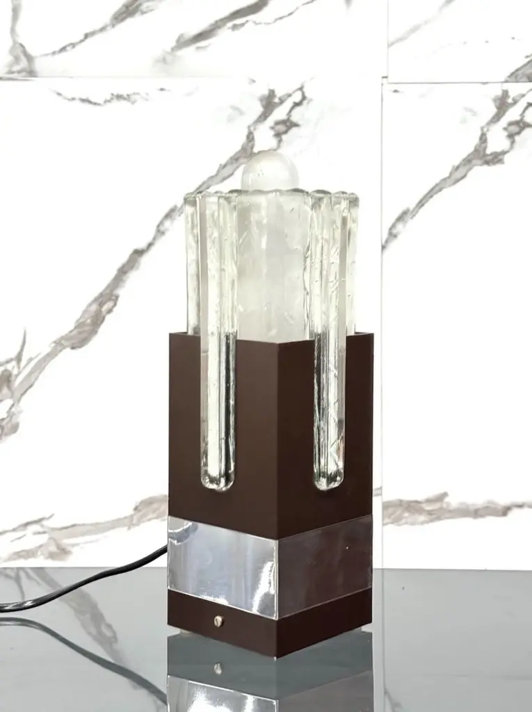 Gaetano Sciolari Lamp For Stilkronen In Metal And Glass Design 1970s.Brown metal and steel frame, glass diffusers.The item is in excellent conservative condition, there is no cosmetic or structural defect to report, only slight and obvious signs of aging. (Please see photos)Height 24 cmwidth and depth 8x8 cmShipping included in the price throughout Italy2 Pieces availableN.B.: WE OFFER INTERNATIONAL SHIPPING BUT COSTS AND TIMES VARY AND ARE CALCULATED DEPENDING ON THE DESTINATION.P.S. : IF YOU THINK OUR REQUEST IS TOO HIGH BUT YOU ARE SERIOUSLY INTERESTED IN THIS ITEM , PLEASE FEEL FREE TO SEND US AN OFFER IN PRIVATE , REMEMBER EVERYTHING IS NEGOTIABLE AS LONG AS THERE IS MUTUAL RESPECT.N.B. : NON vengono effettuate restituzioni dovute a ritardi di consegne o di ritiri da parte dei trasportatori privati da noi utilizzati come servizio di trasporto, soprattutto in caso di articoli di grandi e pesanti dimensioni, per la quale vi occorre più tempo.We specify that expedited deliveries are made only for small items.