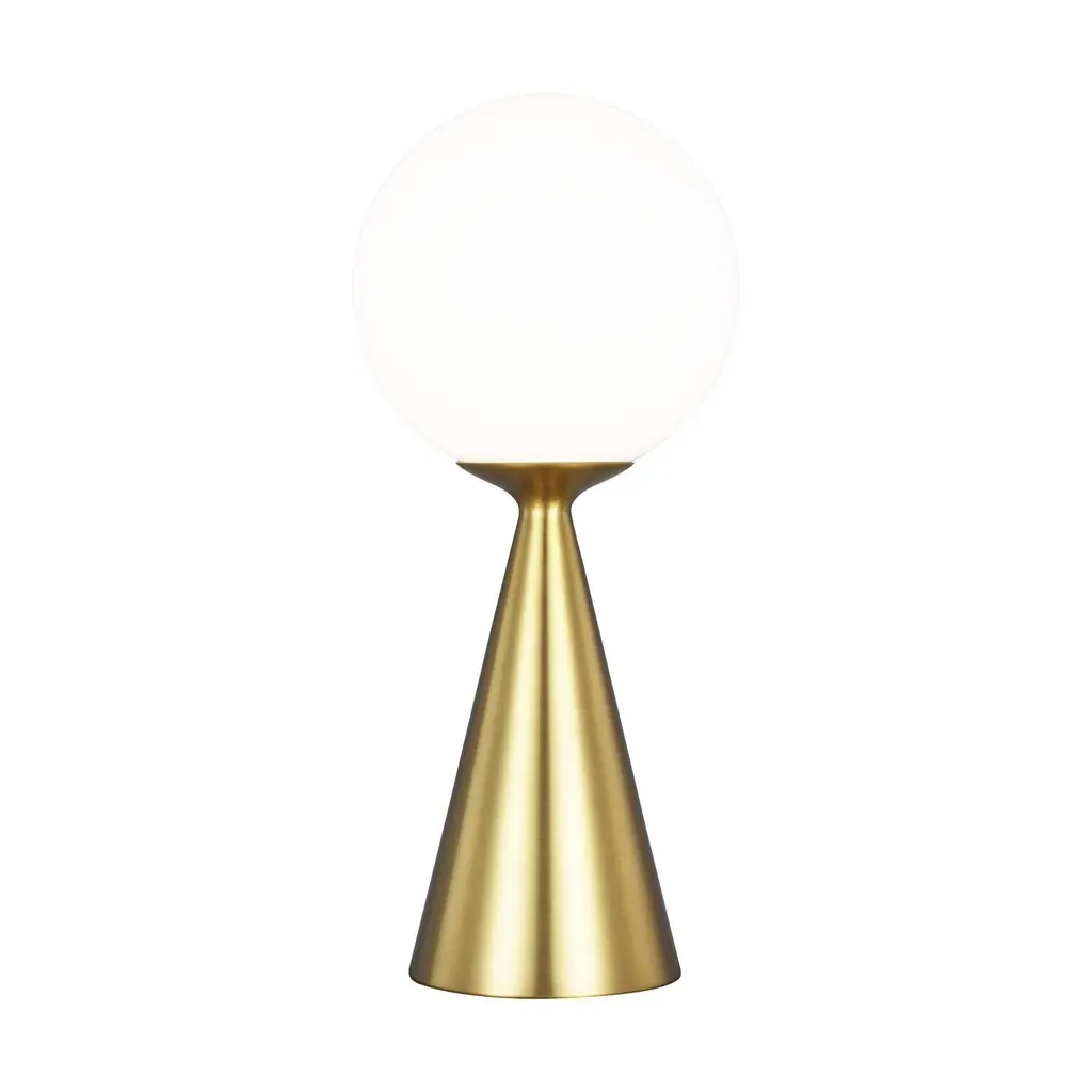 Galassia one light table lamp in burnished brass is the perfect way to achieve your desired fashion or functional needs in your home. Featured in the decorative Galassia collection 1 A19 Medium 9 watt light bulb Fixture is supplied with 1 light bulb milk white glass shade Featured in the decorative Galassia collection