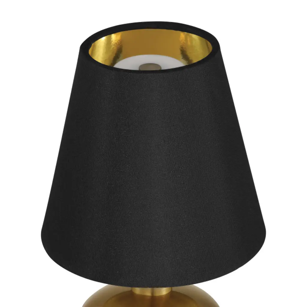The Galavant Cordless Table Lamp is a petite lamp that makes movement a breeze. The rechargeable bulb sits atop the metal body, and the black shantung shade slides seamlessly over it. The on/off switch is conveniently located on the top of the bulb, and the shade has a foil lining for a luxe touch.