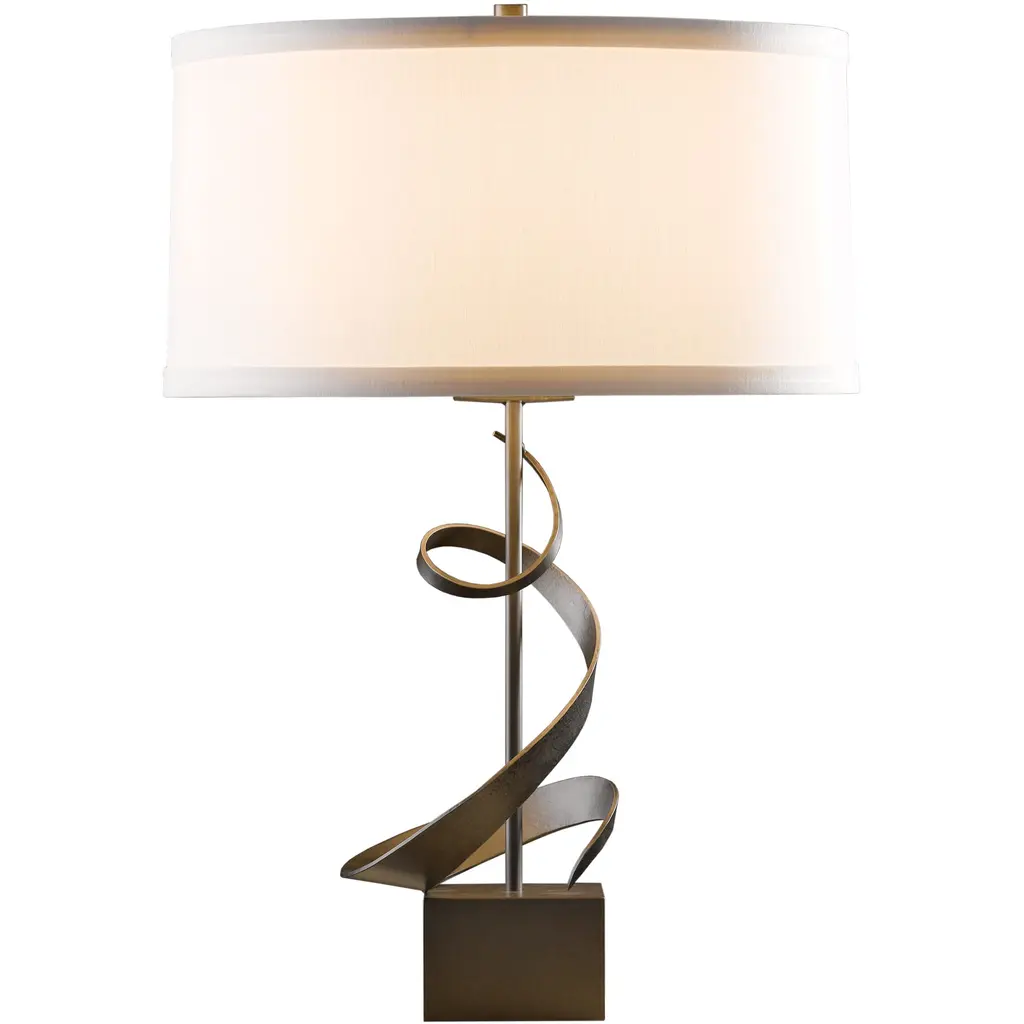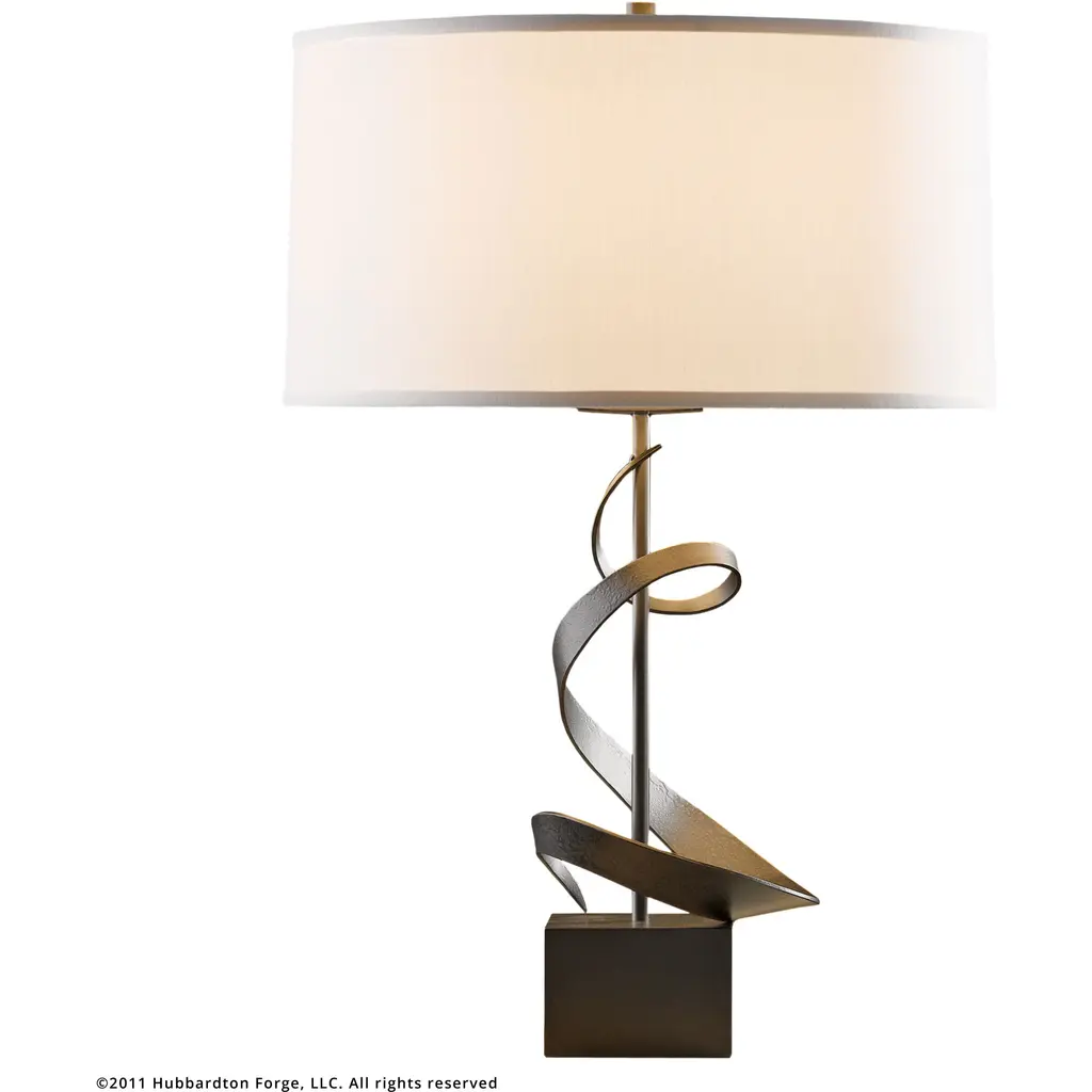 A work of art in its own right, our Gallery Table Lamp exhibits three twists of forged steel that flows from pedestal to shade, wrapping around the lamp tube along the way. Crafted by our metal virtuosos at our forge here in Vermont, each piece is unique.