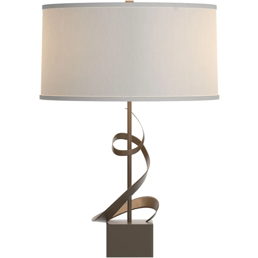 A work of art in its own right, our Gallery Table Lamp exhibits three twists of forged steel that flows from pedestal to shade, wrapping around the lamp tube along the way. Crafted by our metal virtuosos at our forge here in Vermont, each piece is unique.