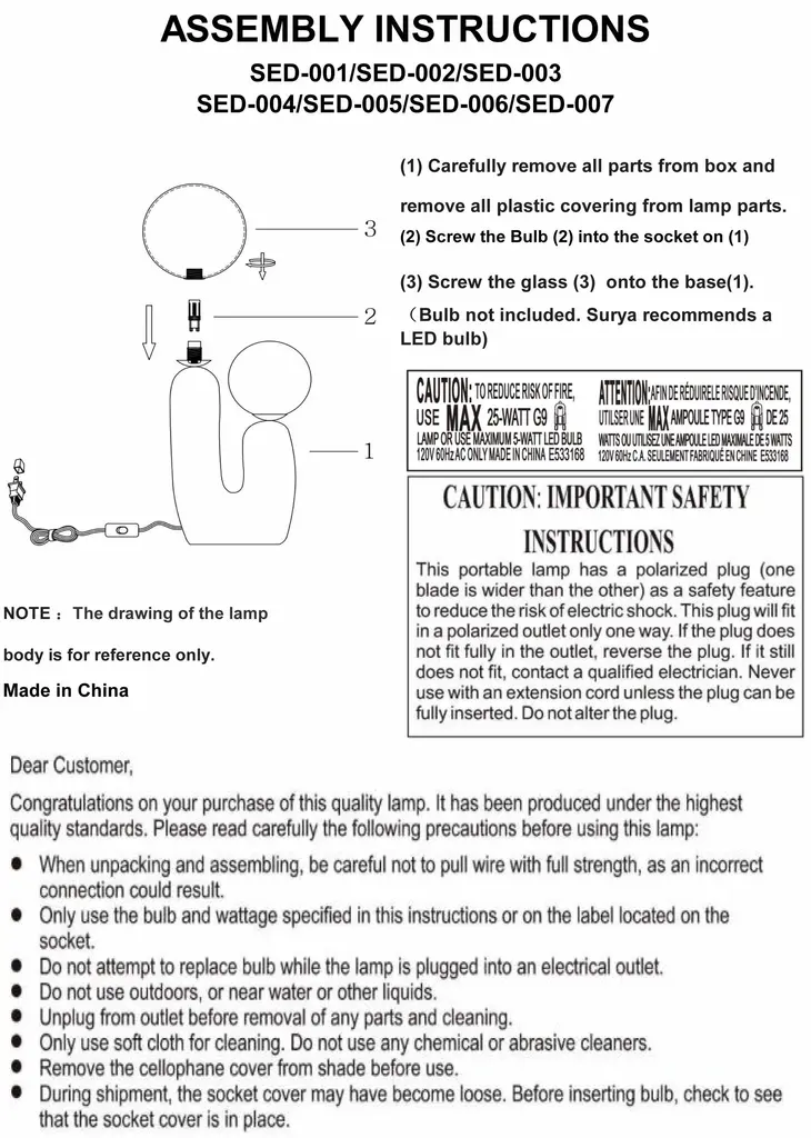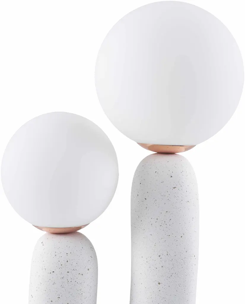 Collection: Gallodoro Colors: White, Translucent Material: Body: Resin,Shade (Outside): Glass,Shade (Inside): Glass Styles: Transitional,Traditional Made In: China Lighting Type: Accent Table Lighting Shade Material: Glass, Glass, Glass Shade Color: White, White Cord Length: 6' Switch Type: Line Number of Bulbs: 2 Socket Type: G-9 Bulb Wattage: 7W