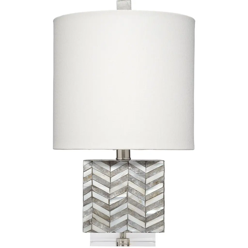 Unashamedly glamorous, this jewel-like table lamps art deco influence is a delight to behold. It is supported by a slice of crystal-clear acrylic, and its handcrafted base and finial are created with artfully applied strips of luminous mother-of-pearl. A white linen drum shade seems to float above it all. We love this in a bedroom or dressing area