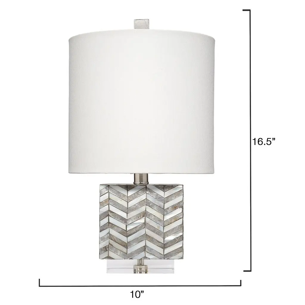 Unashamedly glamorous, this jewel-like table lamp’s art deco influence is a delight to behold. It is supported by a slice of crystal-clear acrylic, and its handcrafted base is created with artfully applied strips of luminous mother-of-pearl. A white linen drum shade seems to float above it all. We love this in a bedroom or dressing area!