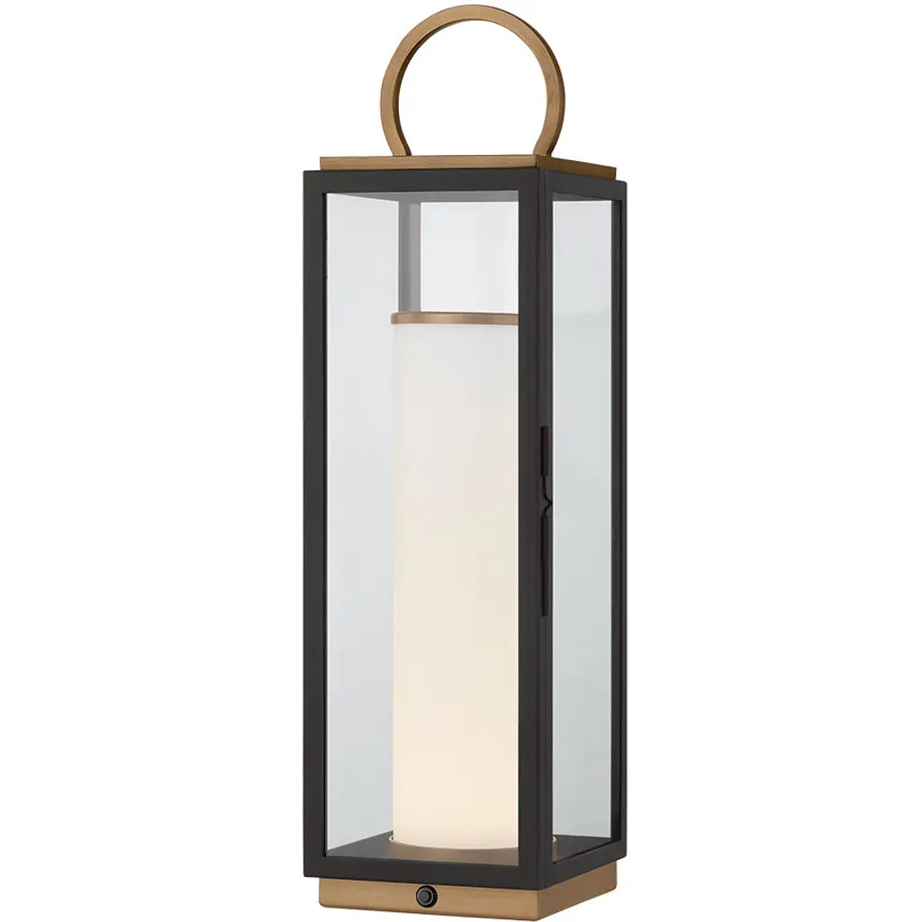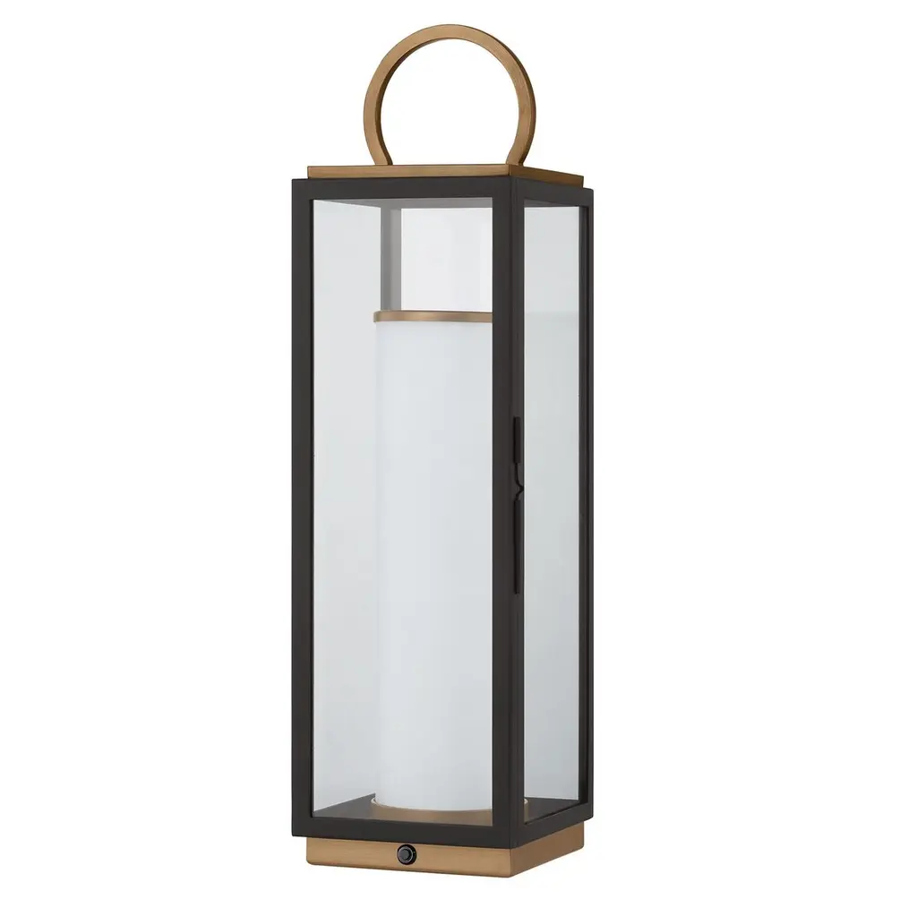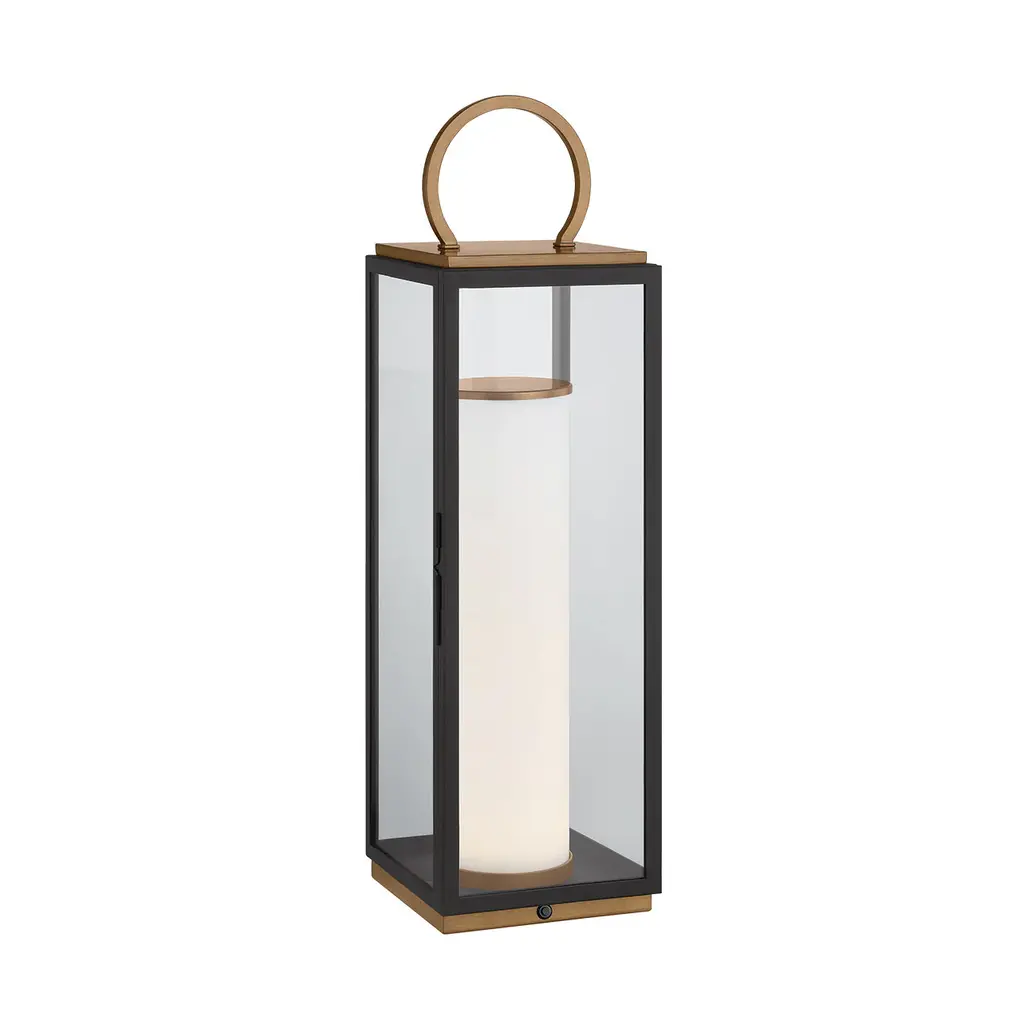 Illuminate your outdoor space with the luxurious Gareth Portable LED Table Lamp from Troy Lighting. Inspired by classic lanterns, this sleek fixture features a mix of Textured Bronze and Patina Brass for a modern twist. Its LED technology provides a long-lasting, lightweight glow, making it perfect for gatherings or late nights on the patio. Take it anywhere with its convenient handle and rechargeable design. Highlights
