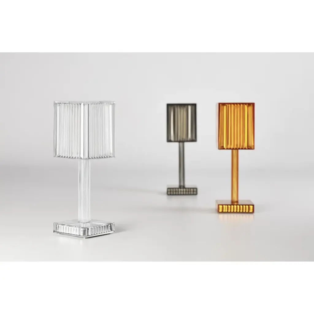 The Gatsby collection, designed by Ramón Esteve for Vondom, recalls the art déco lighting. This lamp is based on the idea of creating a surrounding atmosphere through a suggesting play of lights using the lamp’s surfaces, where the material reproduces the shapes and sensations of engraved glass.