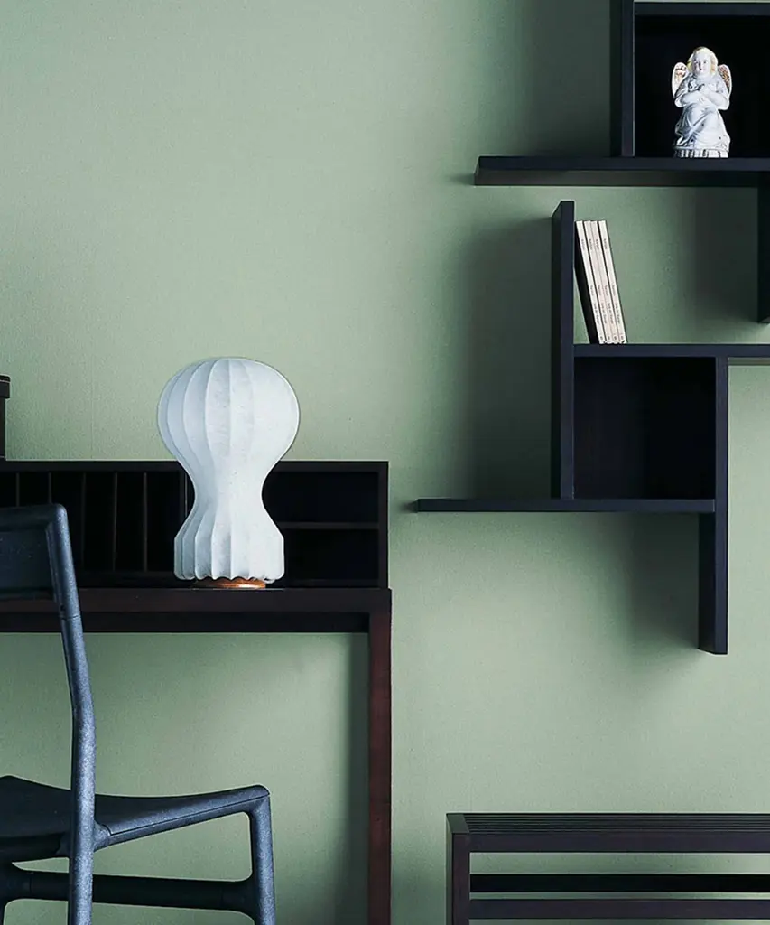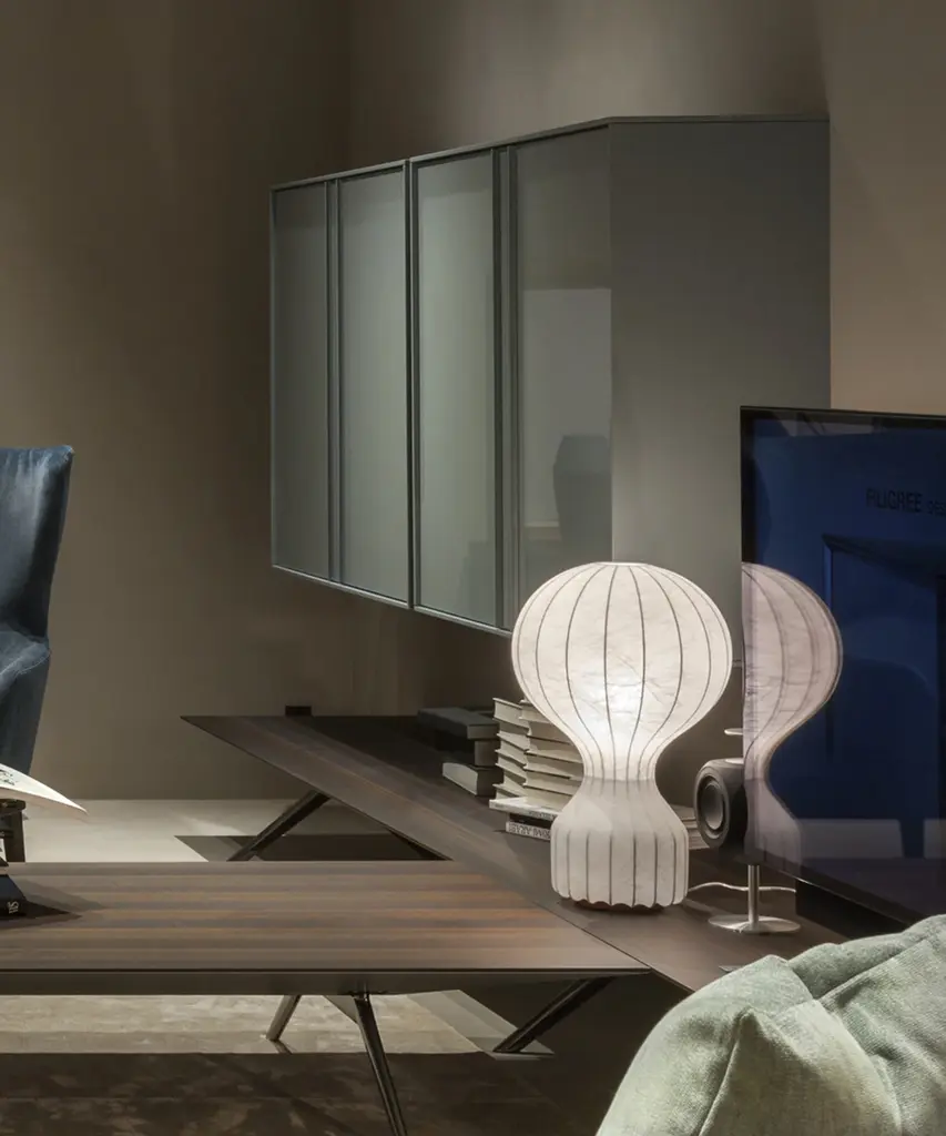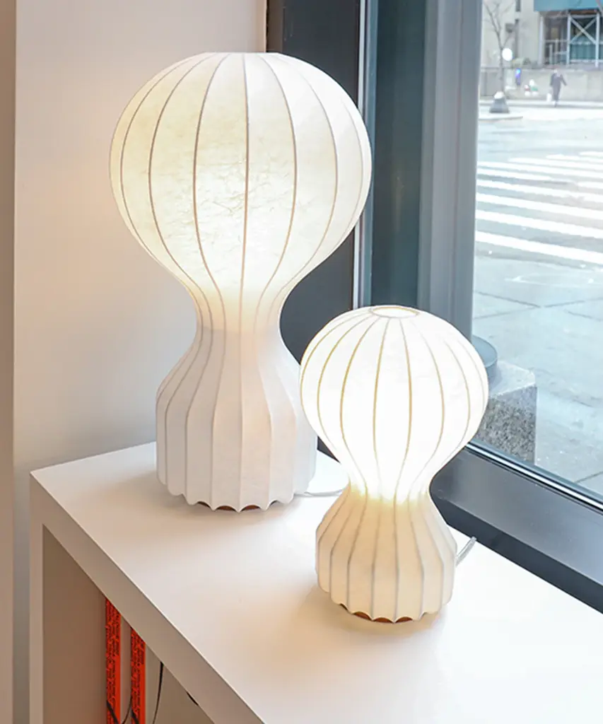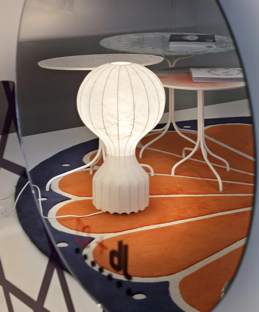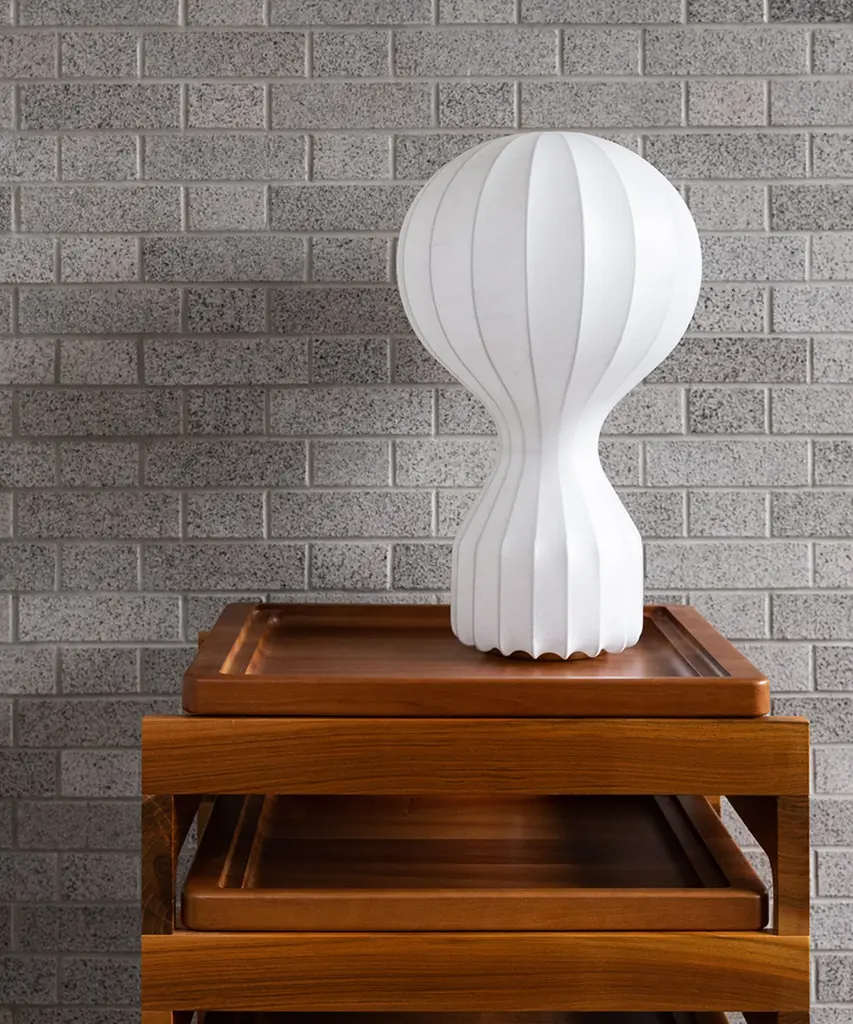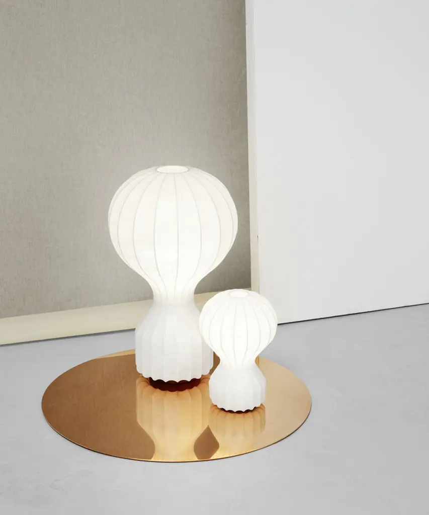 Named after "cat," Gatto is a Castiglioni brother 1960 cocoon creation that sits softly on any table, offering a glowing diffused light. The lamp is done in the famous "cocoon" style that the duo was known for a white powder coats the internal steel structure, which is then sprayed with the soft, webby resin. The diffuser is then protected by a delicate resin transparent, sprayed-on finish. The inspiration behind the design: Soft, sweet, and at home atop any table, this "cat" from Achille and Pier Giacomo Castiglioni was inspired by the work created by artist George Nelson for the Howard Miller Company in the late 1940s. This authentic design is produced in Italy exclusively by Flos.
