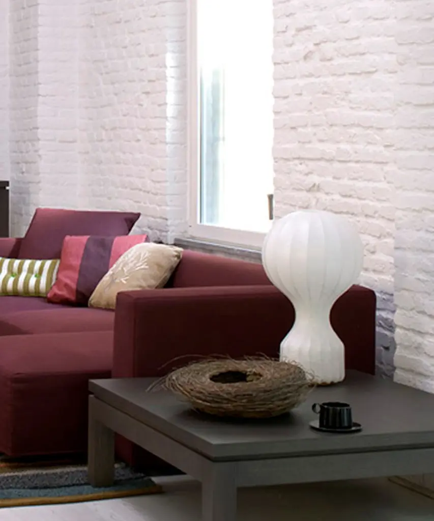 Named after "cat," Gatto is a Castiglioni brother 1960 cocoon creation that sits softly on any table, offering a glowing diffused light. The lamp is done in the famous "cocoon" style that the duo was known for a white powder coats the internal steel structure, which is then sprayed with the soft, webby resin. The diffuser is then protected by a delicate resin transparent, sprayed-on finish. The inspiration behind the design: Soft, sweet, and at home atop any table, this "cat" from Achille and Pier Giacomo Castiglioni was inspired by the work created by artist George Nelson for the Howard Miller Company in the late 1940s. This authentic design is produced in Italy exclusively by Flos.