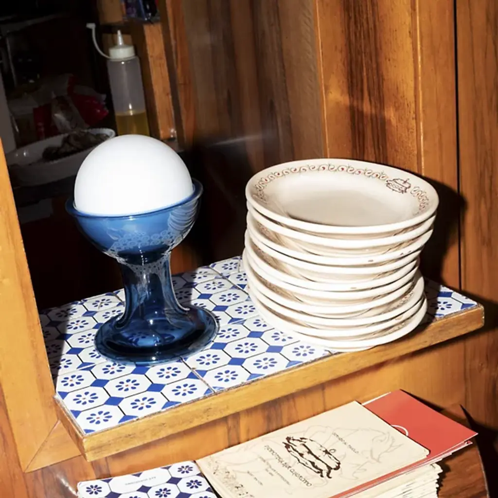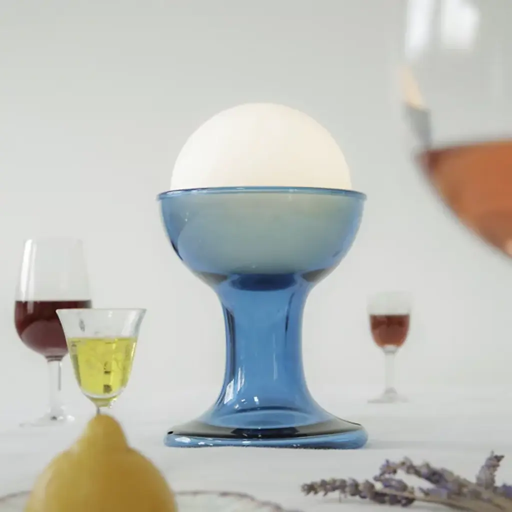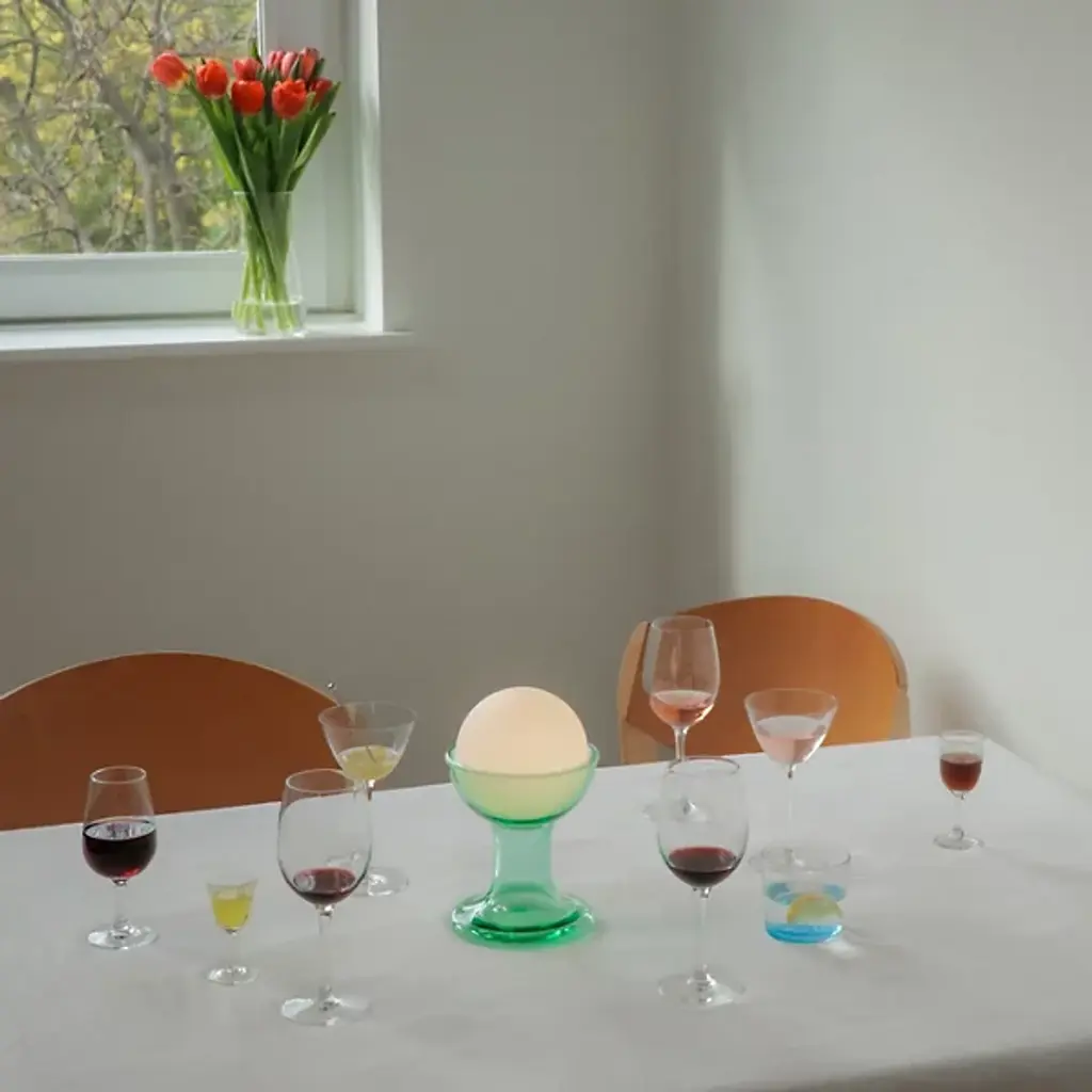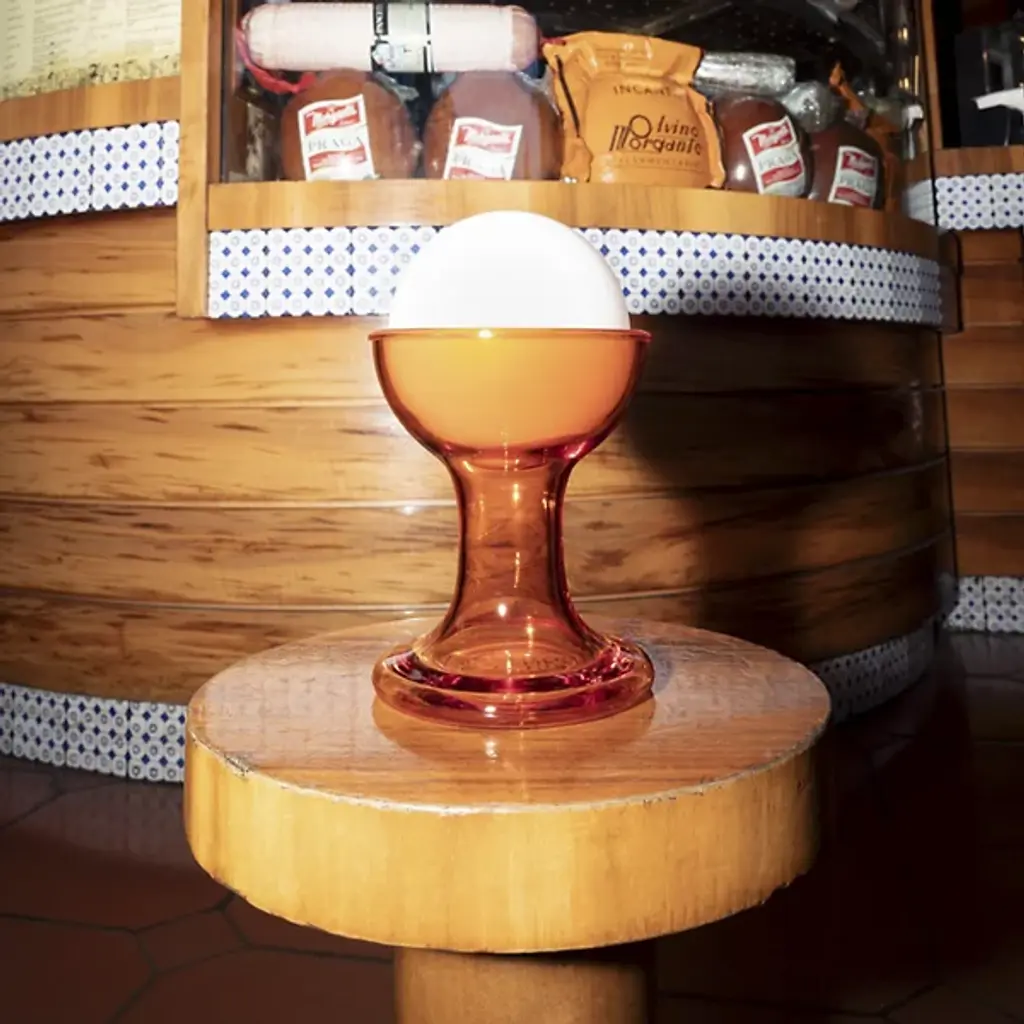 The Gelato Rechargeable LED Table Lamp from Established & Sons showcases artisanal modern style with a refined yet playful appearance. Designed by Carlo Nason, it draws inspiration from the beloved Italian treat, pairing a colorful glass “cup” with a frosted glass orb that glows from within. The freestanding orb houses a custom, replaceable LED bulb with an integrated battery and a haptic three-step dimmer for effortless control. Portable and easy to recharge, it connects directly via a USB-C magnetic cable, blending charm with modern functionality.